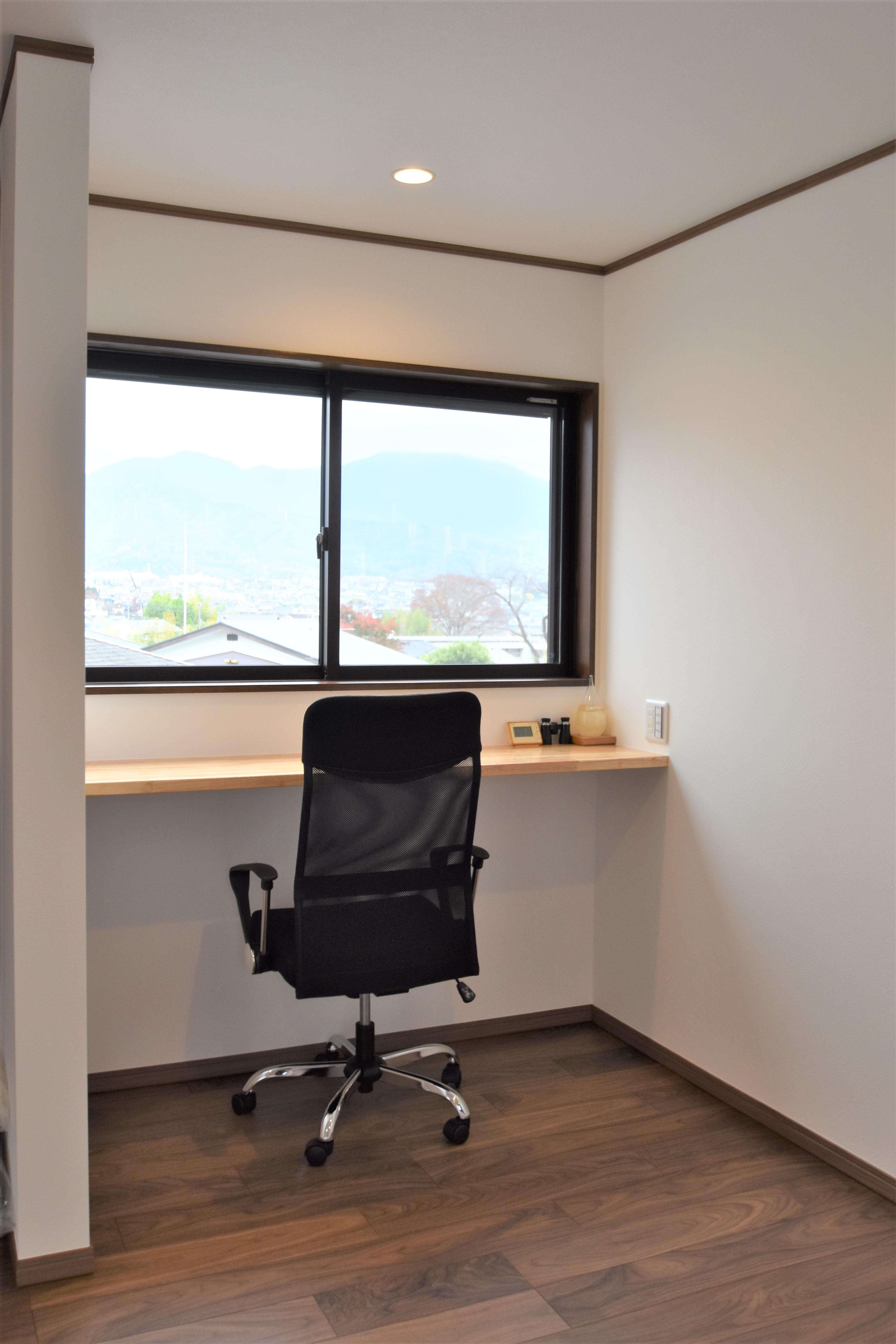 2階の寝室の一角に設けたワークスペース。丹沢の山の景色が眼下に広がります♪