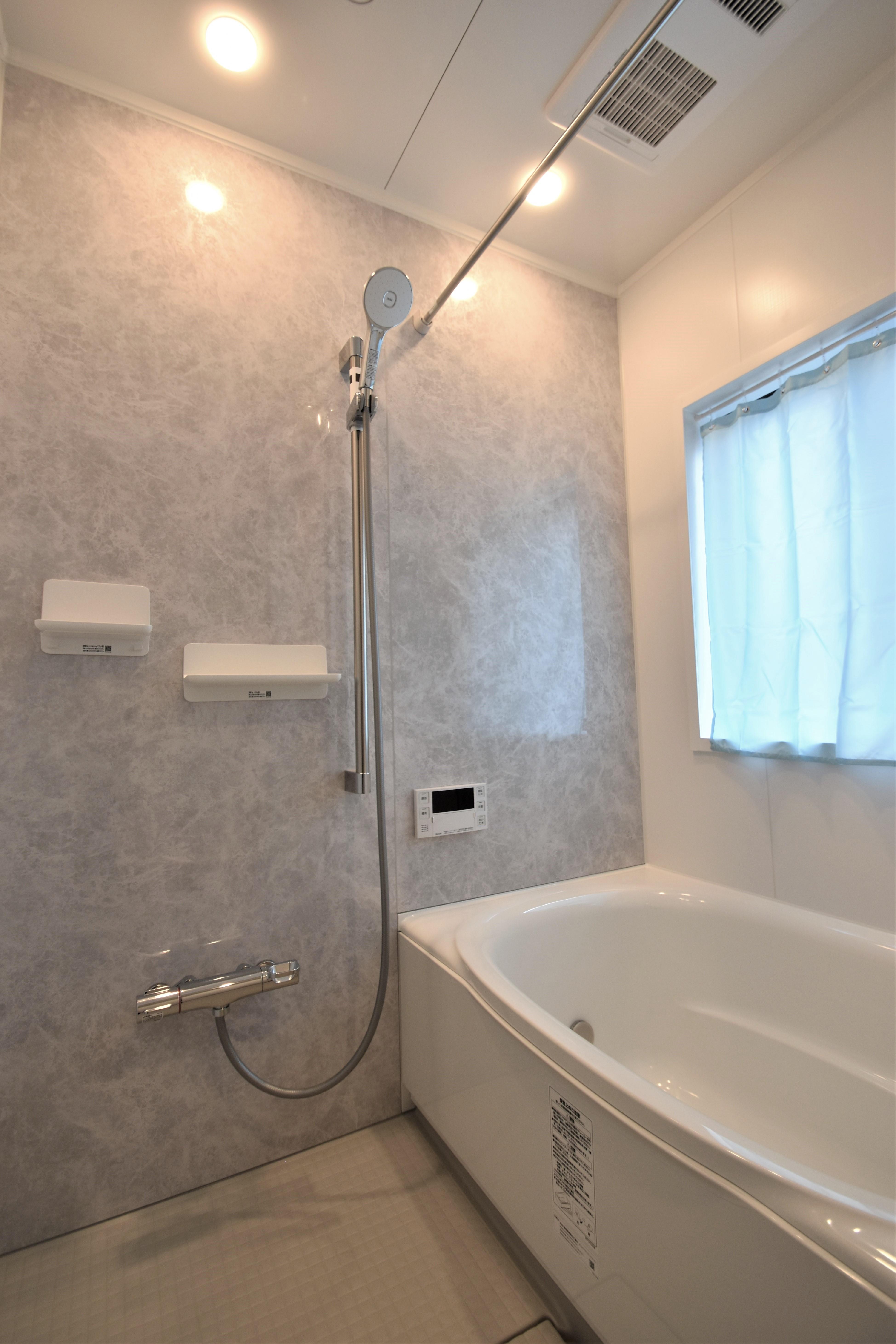 トイレの位置を移動した関係で浴室・洗面所・トイレを1列にコンパクトにまとめました。マグネットシェルフは使い勝手に合わせて自由な位置に設置できます。(LIXIL リデア 1216)
