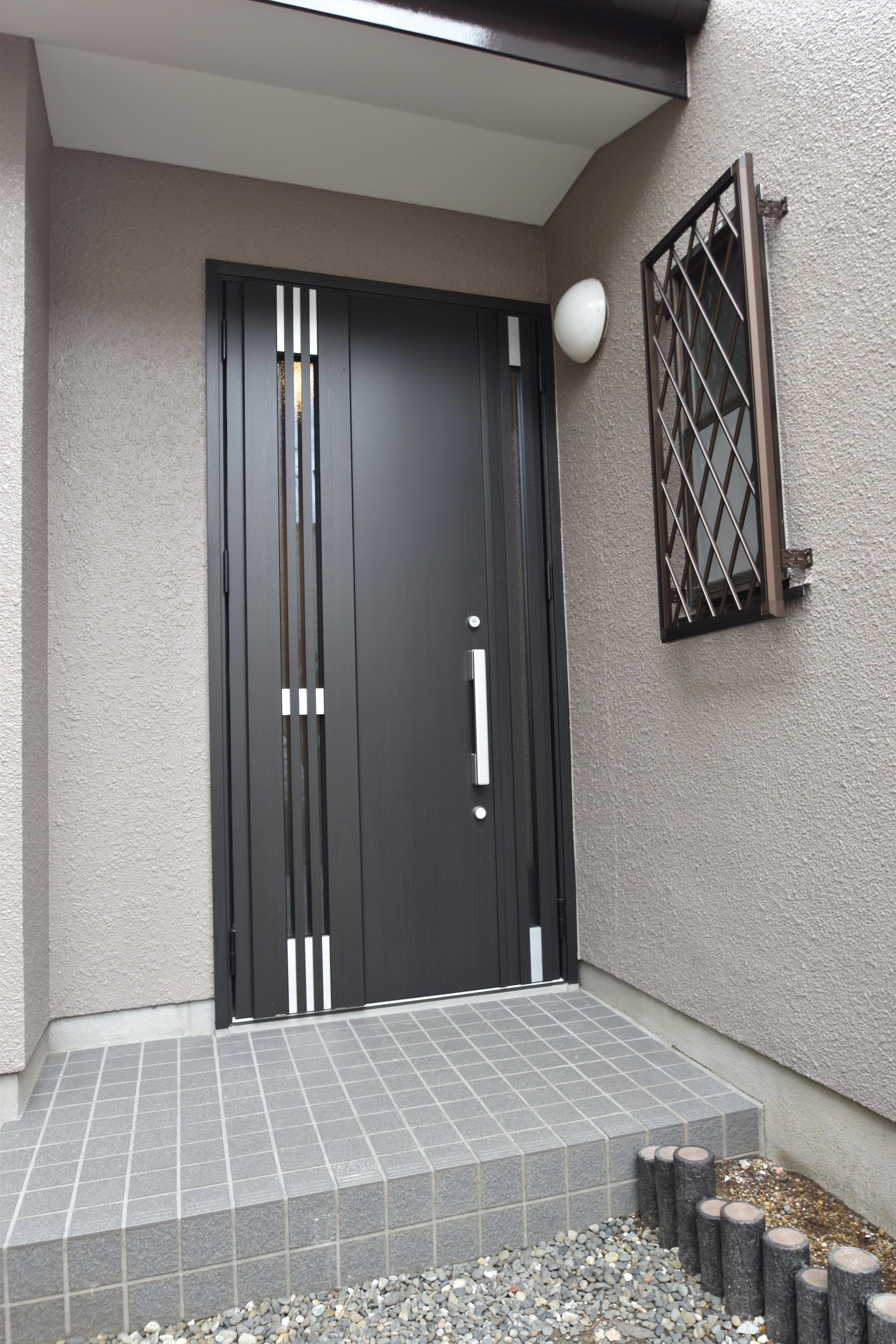 夏はドアを閉めたまま風を取り込める採風タイプの玄関ドアをお選びいただきました。(LIXIL ジエスタ2 採風タイプ 親子入隅 G82型)