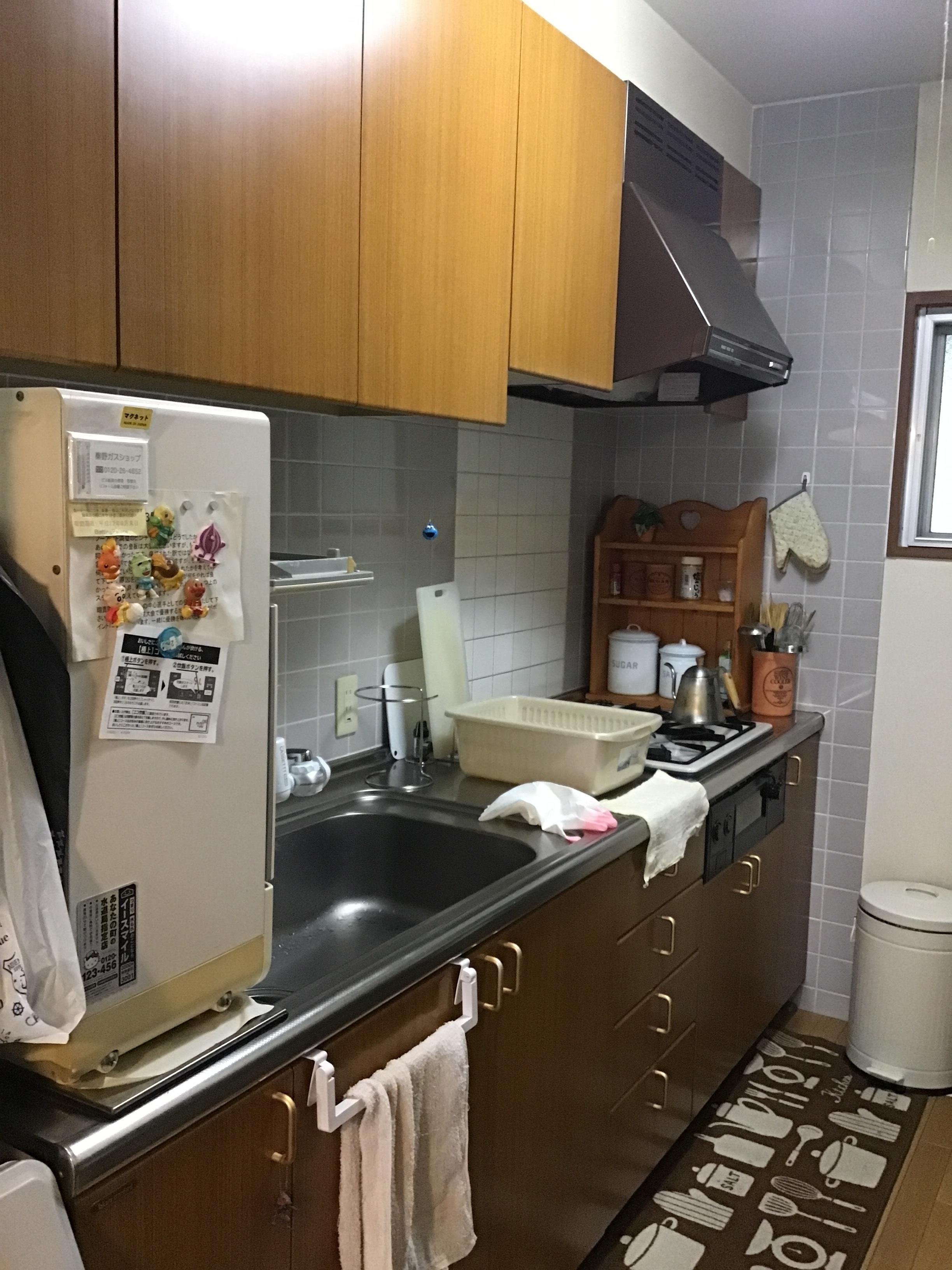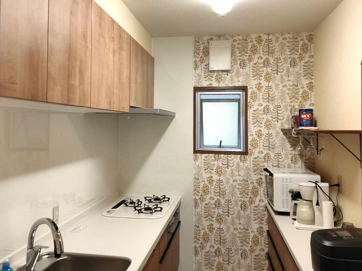 クロスの色で迷われていたので、3Dパースでキッチン・洗面所の空間を作成し、3パターン作成しご提案しました。お客様宅で3Dパースに壁紙を張り付けて、完成イメージをお見せしながらクロスを決めました。北欧風のナチュラルなあたたかみのあるキッチン空間になりました♪