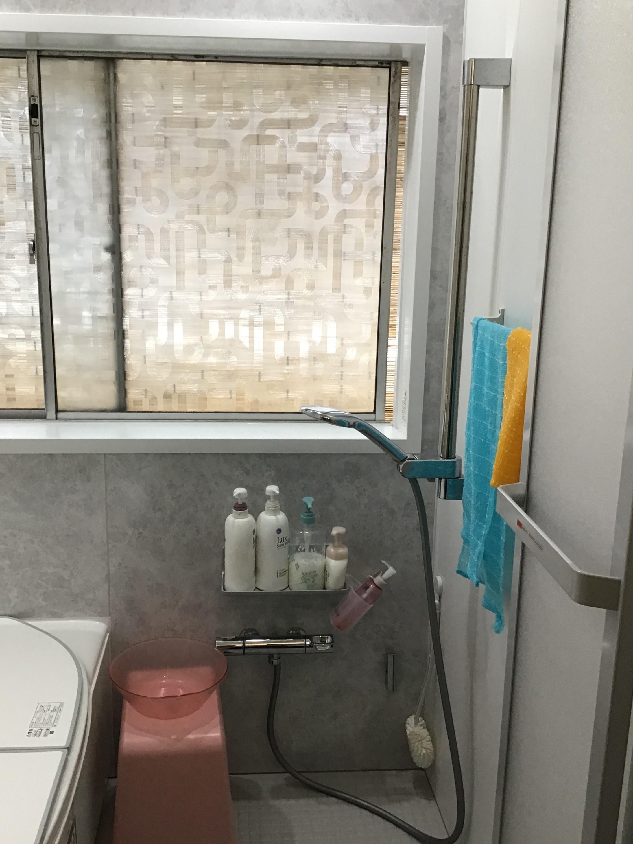 昔ながらのタイル張り浴室をユニットバスに交換し、浴槽の位置を窓側から変更しました。新しい1216サイズのユニットバスには、冷たさを感じにくいキレイサーモフロアを採用。保温効果の高い浴槽とフタでお湯が冷めにくく、節水シャワーは空気を含んだ大粒の水滴で心地よく節水できます。また、ゴミがまとまりやすく、お手入れが簡単な排水口も特徴です。