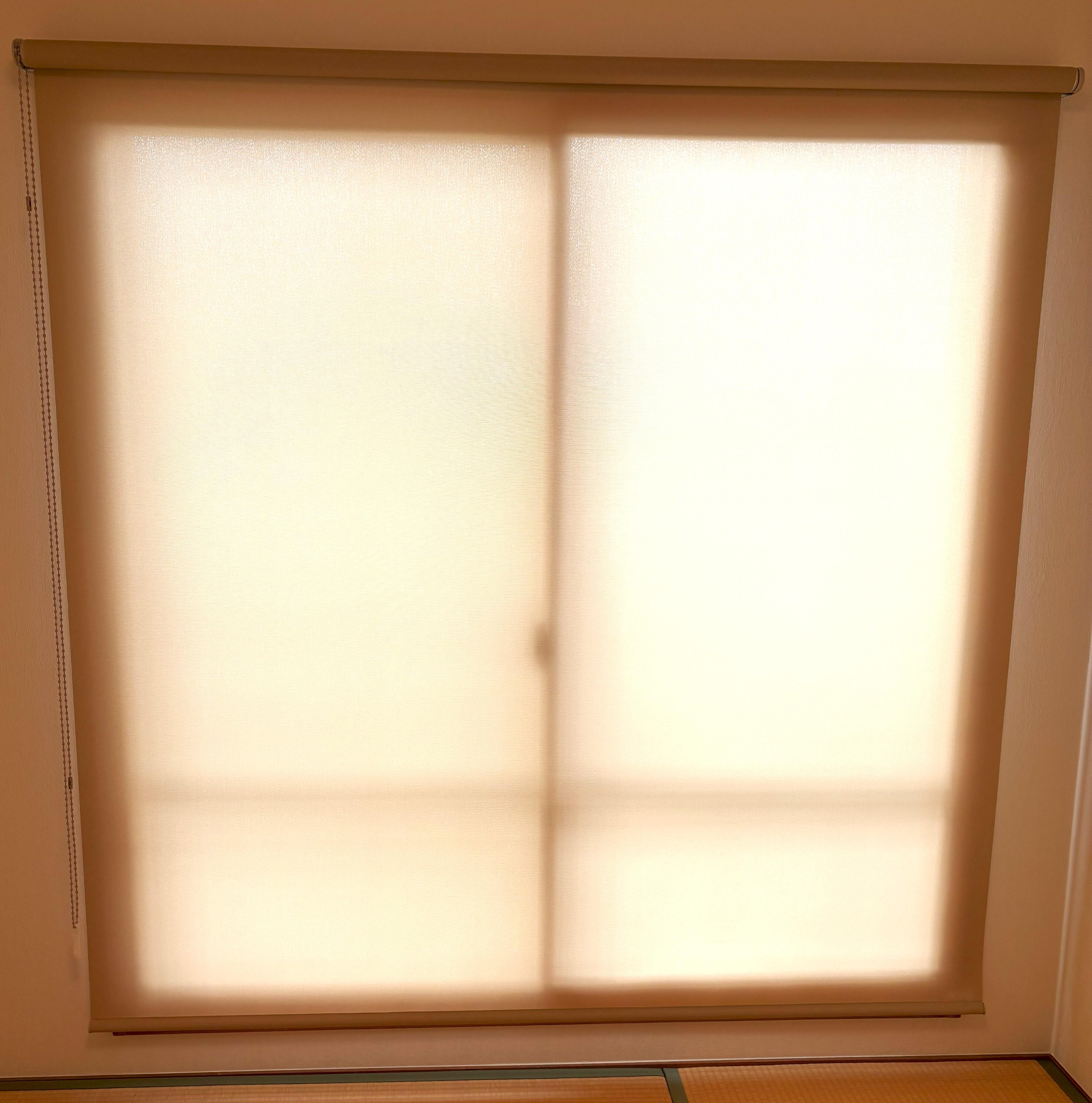 障子に変わり設置したロールスクリーンは、室外から室内にある物の形はほとんど分からない厚さですが、ホワイトは昼間の日の光を多く取り込める色となっているので和室に柔らかい日差しが差し込んでいます。