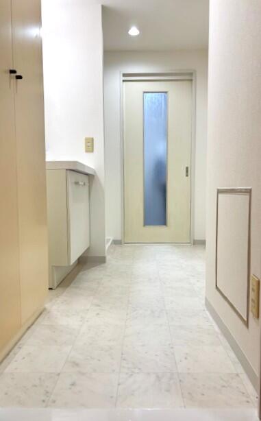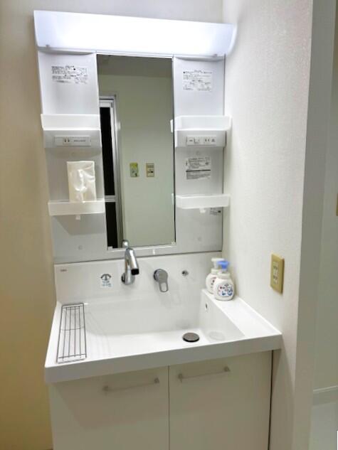 この度はマンション管理組合様のご紹介でご依頼をいただき、誠にありがとうございました。 <施工内容> ★洗面所:洗面化粧台・ダウンライト・浴室折れ戸・洗濯機防水パン交換、建具枠木部塗装、クロス・クッションフロア張替え ★トイレ:便器・ダウンライト交換、手すり取付(下地補強)、建具枠木部塗装 ★キッチン:流し台水栓金具交換 洗面所を明るく清潔にしたいとのご希望に合わせ、照明や内装カラーをアドバイスさせていただきました。 また、トイレは将来を考え、安心して使えるよう手すりも設置。 「明るくなって良かった」とのお言葉をいただき、私どもも大変嬉しく思っております。
