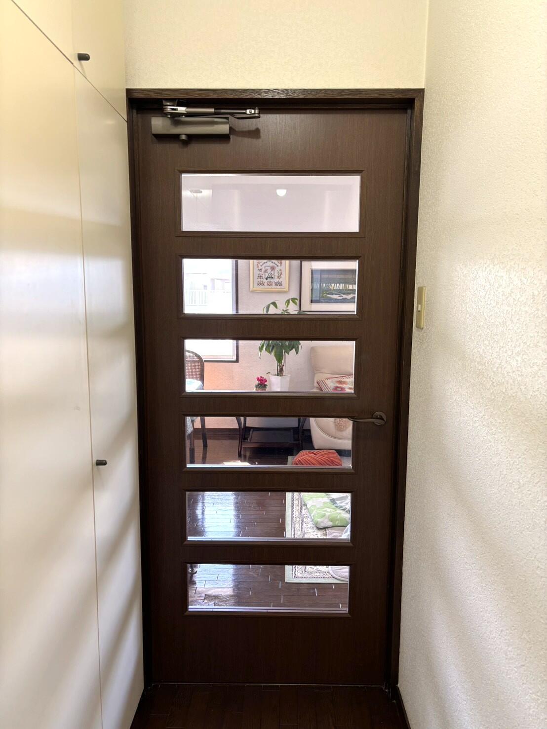 風が強い日や、小学生の孫が遊びに来ると、ドアをバタンと力強く閉めてしまい、 音も大きくてガラスが割れないか心配でした。 コラムホームさんは、工事が終わってからも定期的に女性の方が声をかけに来てくれて対応も良く、 今回もちょうど訪問してくれた時にこの扉の悩みをお話ししました。 建具屋さんもとても丁寧で、本当に良い職人さんでした。 他の部屋の扉も自然に開いてしまうことがあったのですが、調整してくれて改善しました。 ドアクローザーの提案もしてもらい、付けたらばっちり!! これで孫が遊びに来ても安心です。もっと早くやれば良かったですね。
