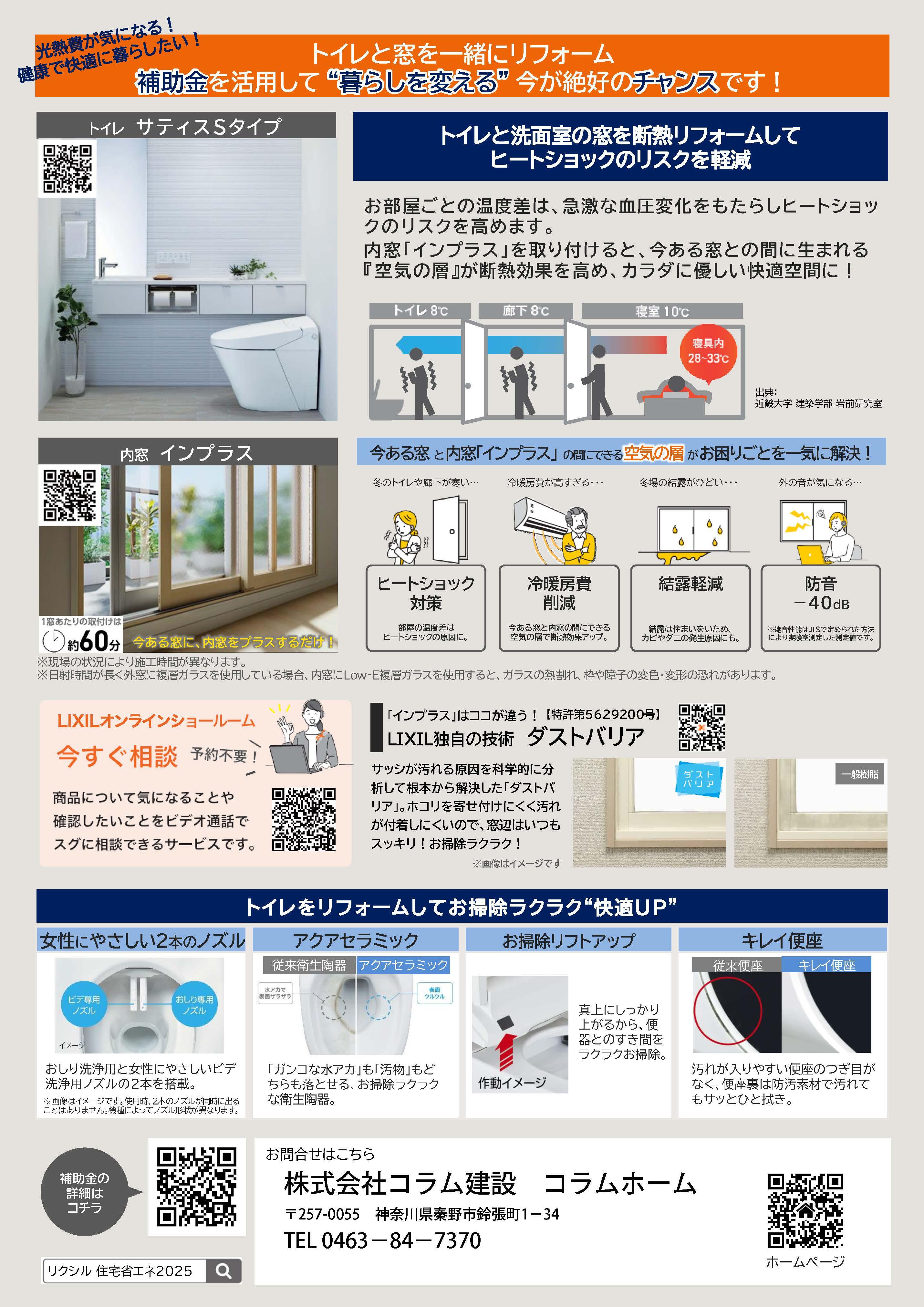 トイレ・洗面所等の窓を同時にリフォームして、補助金と省エネでWでお得♪
