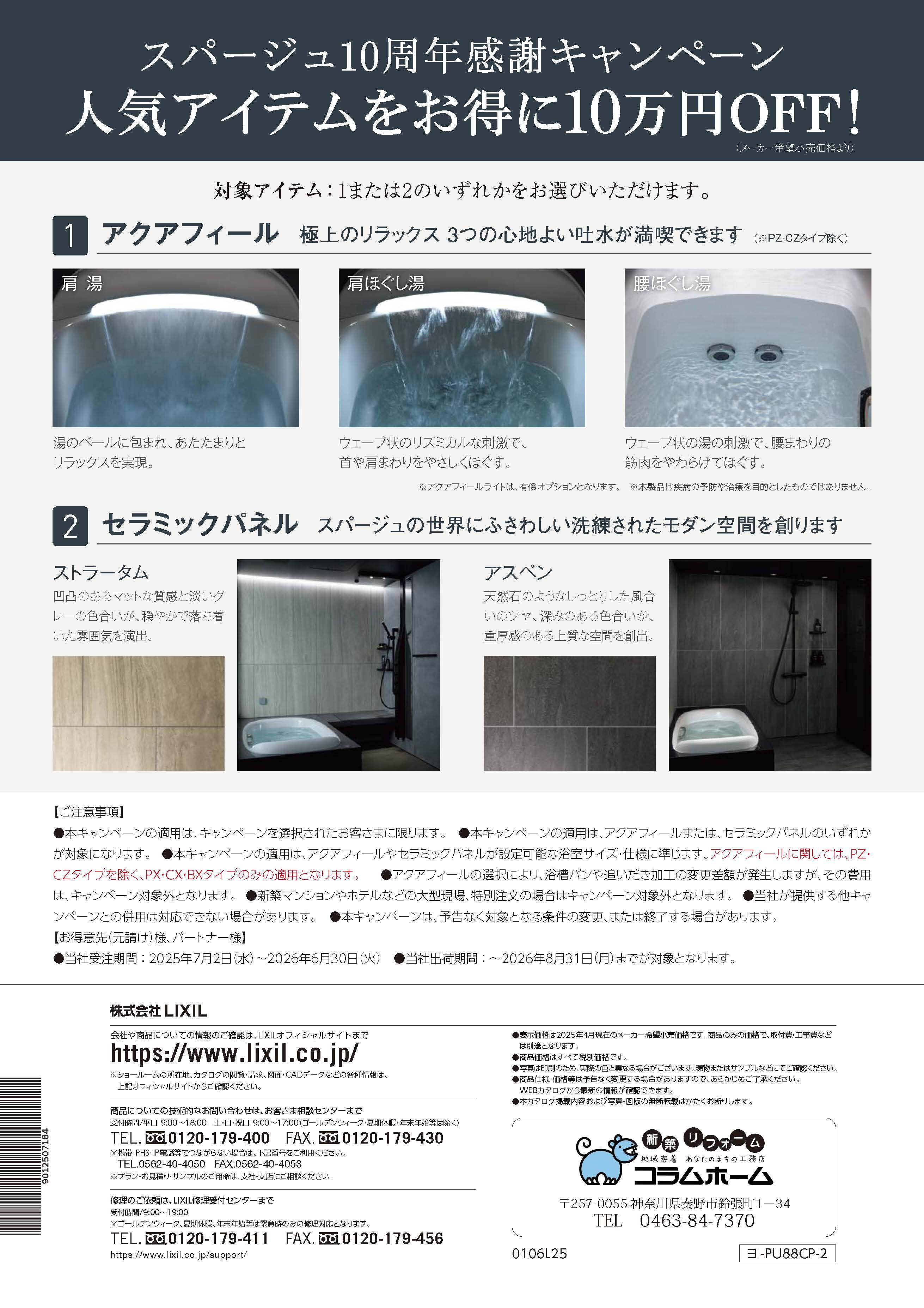 今回はスパージュ10周年感謝キャンペーンのお知らせです。