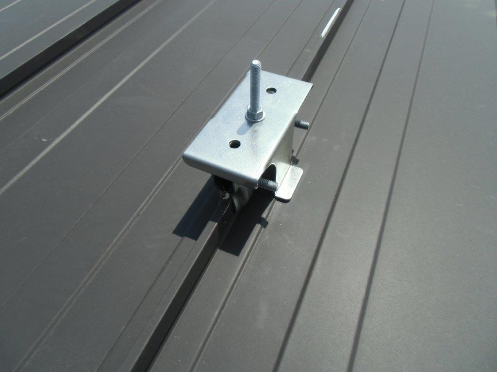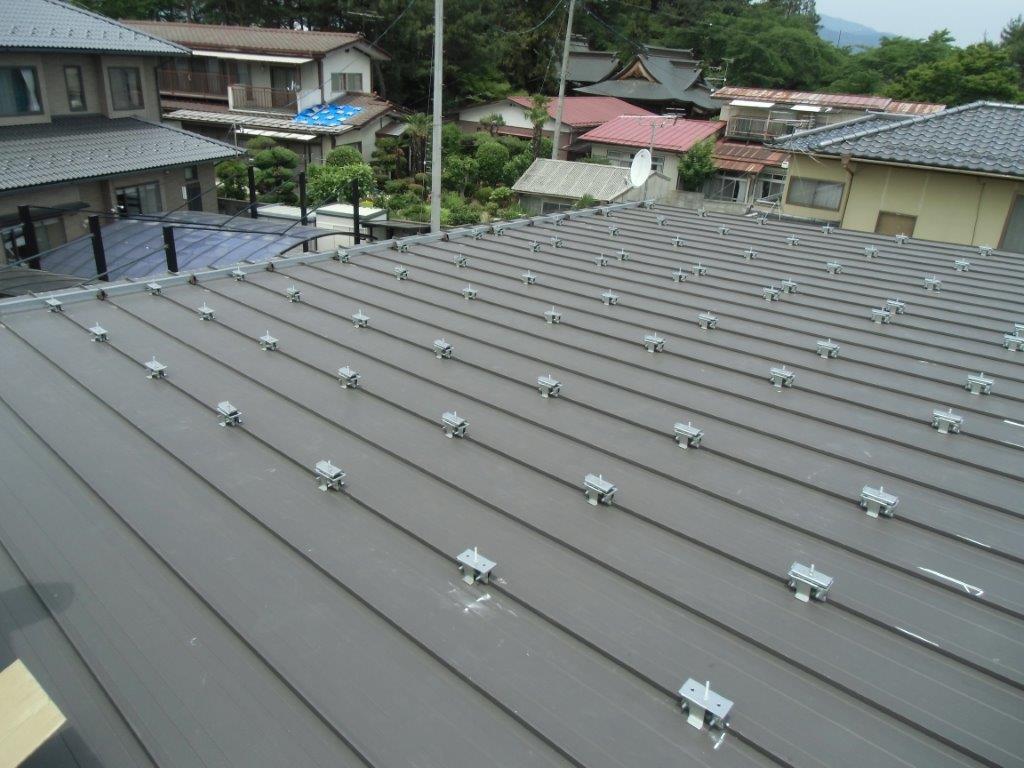 屋根が金属屋根で本来ならアンカー工法で穴をあけて架台を設置するのですが、 お客様は雨漏れを心配されていたので穴をあけない「キャッチ工法」で施工しました。 文字通り、屋根材の一部を挟み込む工法で特殊な金具で強風にも耐えられる、しっかりとした やり方です。カナディアンソーラー製のパネル200wを34枚で計6.8kw。 4kwパワコン2台で変換しています。 すでにオール電化済みのお宅だった為、それらの電気を賄う為に太陽光発電は 大きな助けになっています。