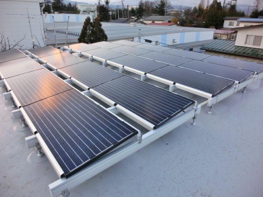 鉄骨2階建てのお宅で屋根は陸屋根。そこに太陽熱温水器が取り付けてありました。 年数もかなり経っており、機械からの錆がひどく、屋根の防水も弱ってきていたので 防水工事をして太陽光発電を設置させて頂きました。 リクシルの陸屋根用架台(ソーラーベース)に190wのパネルを20枚で3.8kwの出力になりました。 リクシルは太陽光発電のメーカーとしては後発ではありますが、エクステリア商材を扱って いる会社ならではで、架台等のアルミ関係の部材に関しては大変良いものを作っています。 また太陽光発電で一番怖い「雨漏れ」に関しても特殊な部材を使用しているので 安心できるメーカーでもあります。 今回お客様も防水工事を一緒にやられたことで、長く安心して太陽光発電をご利用 頂けると思います。