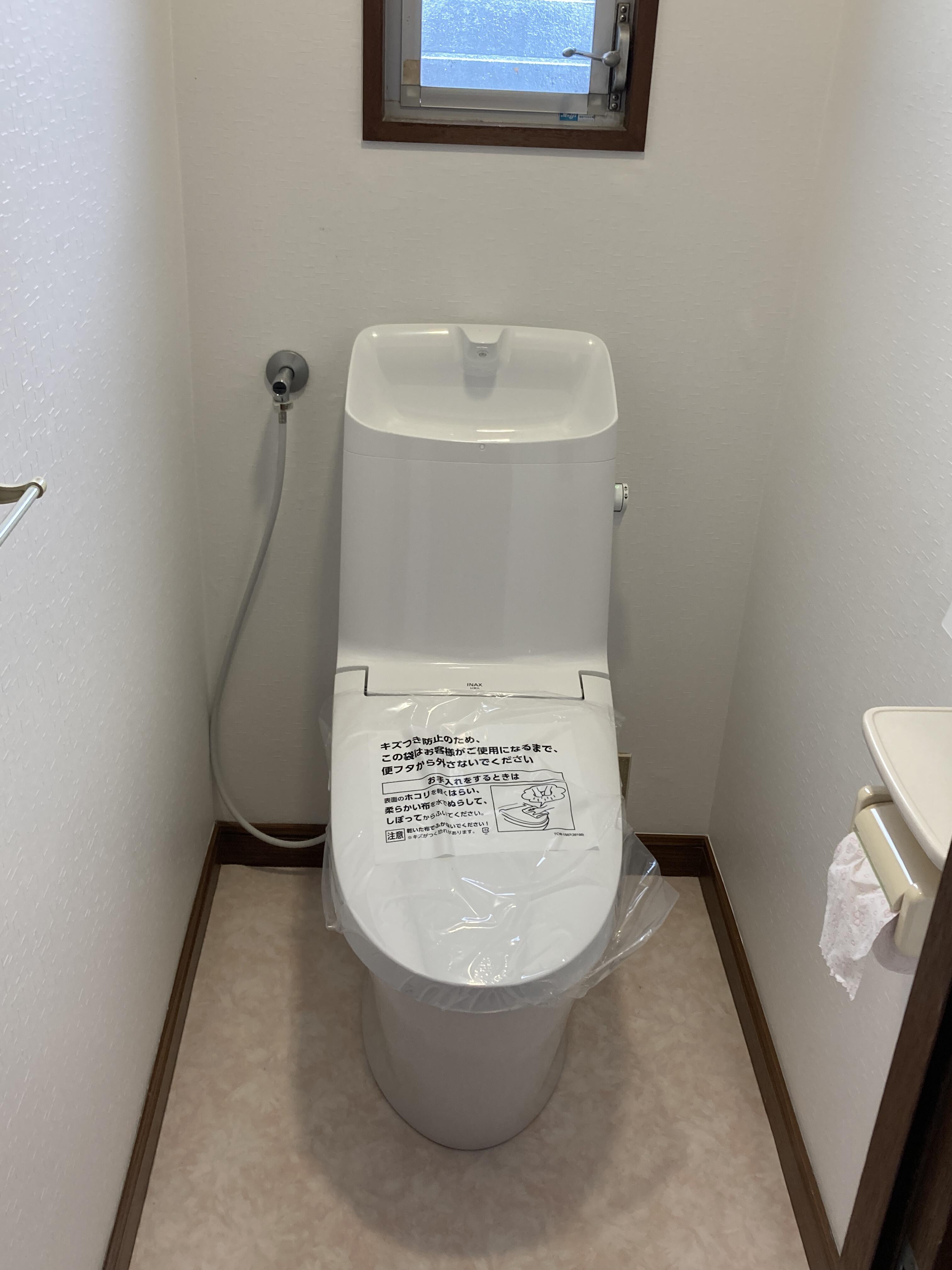 リーズナブルでお掃除がしやすいLIXILのアメージュ一体型シャワートイレをご提案頂きました。合わせてクッションフロアも張り替えましたので、明るく清潔感のある仕上がりになりました。