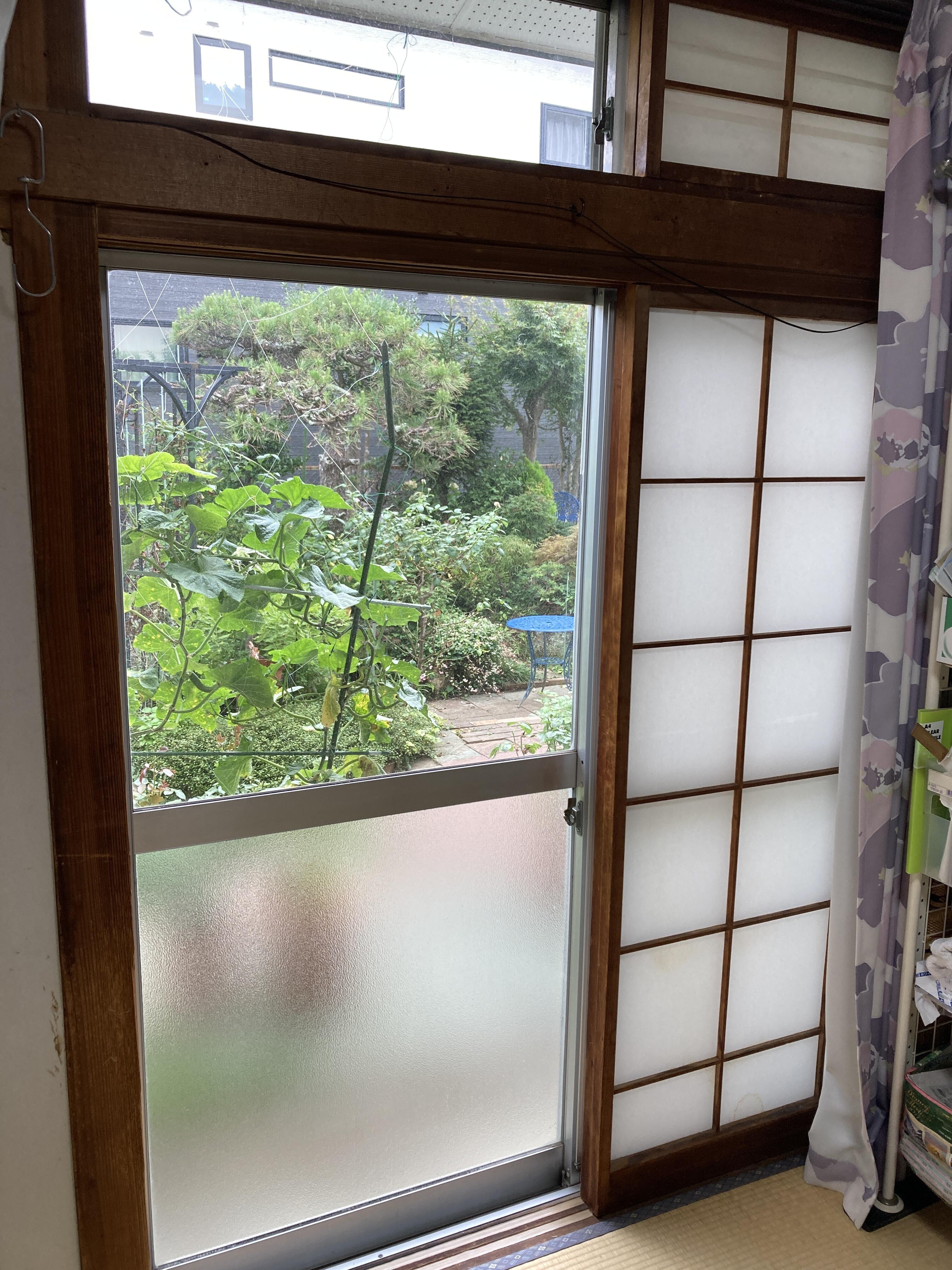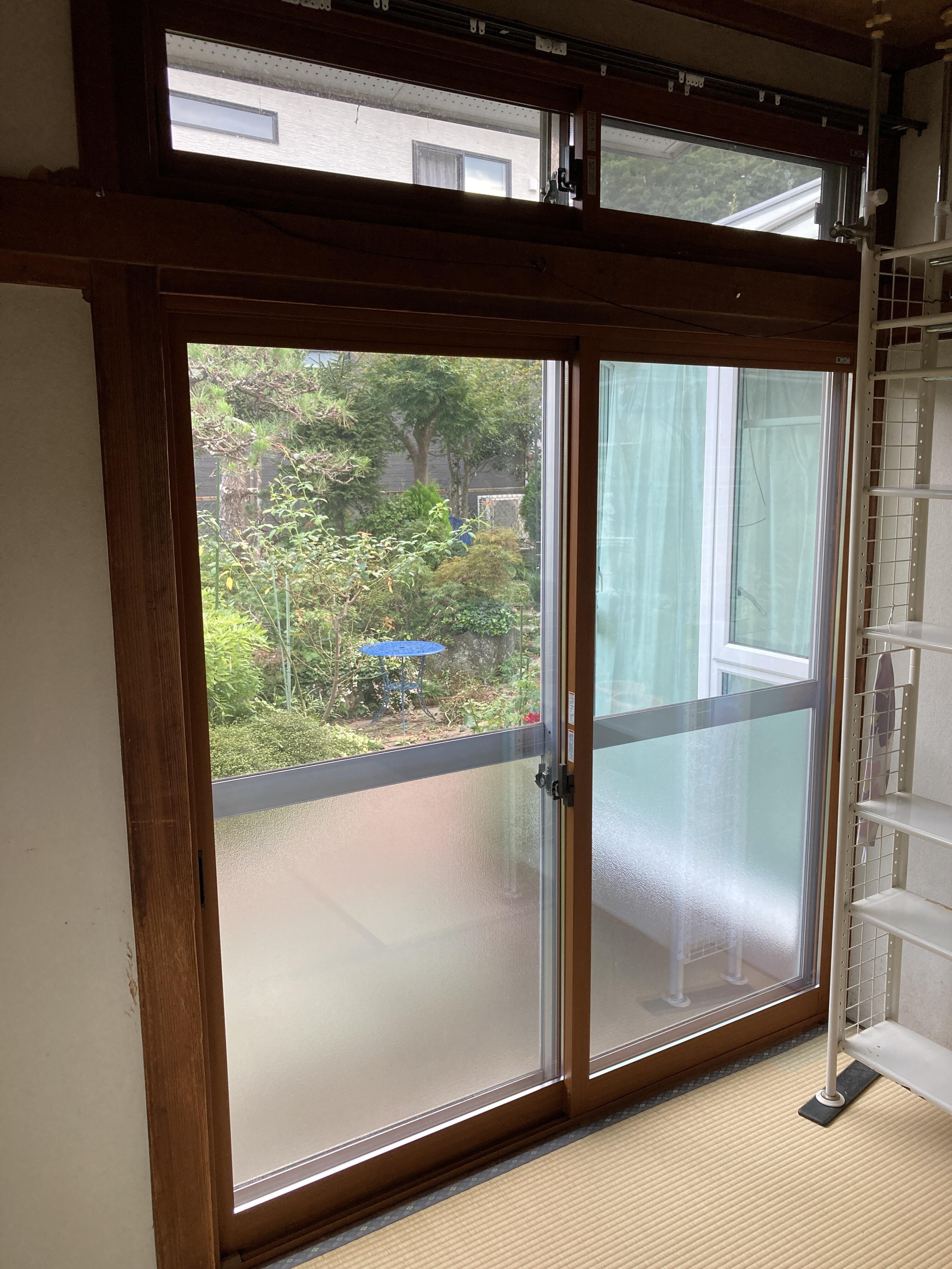 障子は撤去しまして、障子戸のレール部分に内窓の枠を設置出来ましたので、鴨居と敷居のレール溝は埋めたりせず、余計な費用を掛けずに内窓を設置いたしました。掃出し窓の欄間部分にも内窓を設定して断熱効果を上げております。