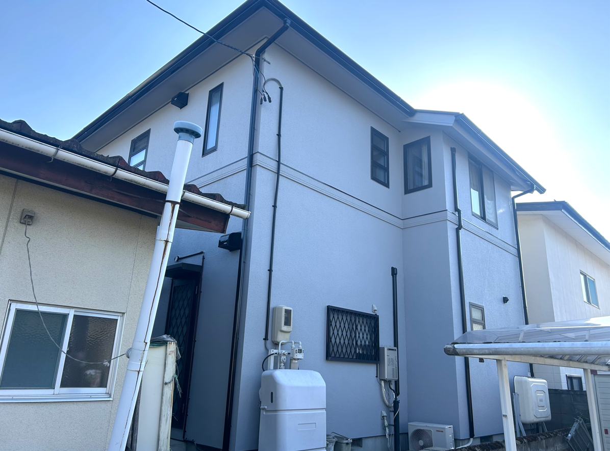 プレオ福島店では、屋根・外壁塗装にあわせた外壁の下地補修やクラック(ひび割れ)補修のご相談も承っております。今回は、「北側外壁の茶色い汚れ(苔・カビ)と、地震の影響で生じた無数のクラックをまとめて直したい」といったご要望から行った、屋根外壁塗装リフォーム事例をご紹介します。