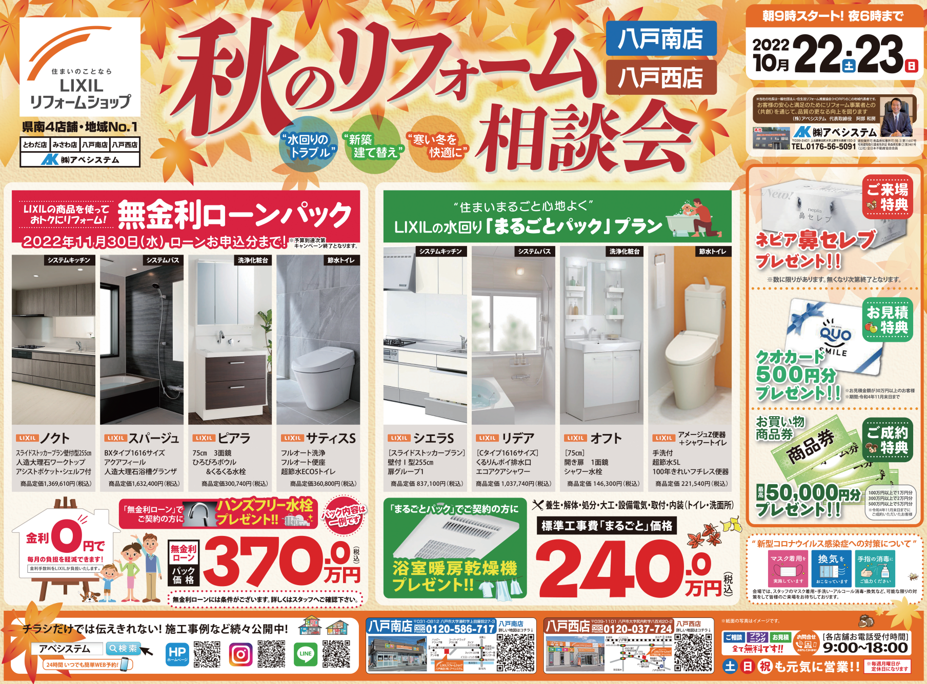八戸南店・八戸西店にて『秋のリフォーム相談会』を開催します♪