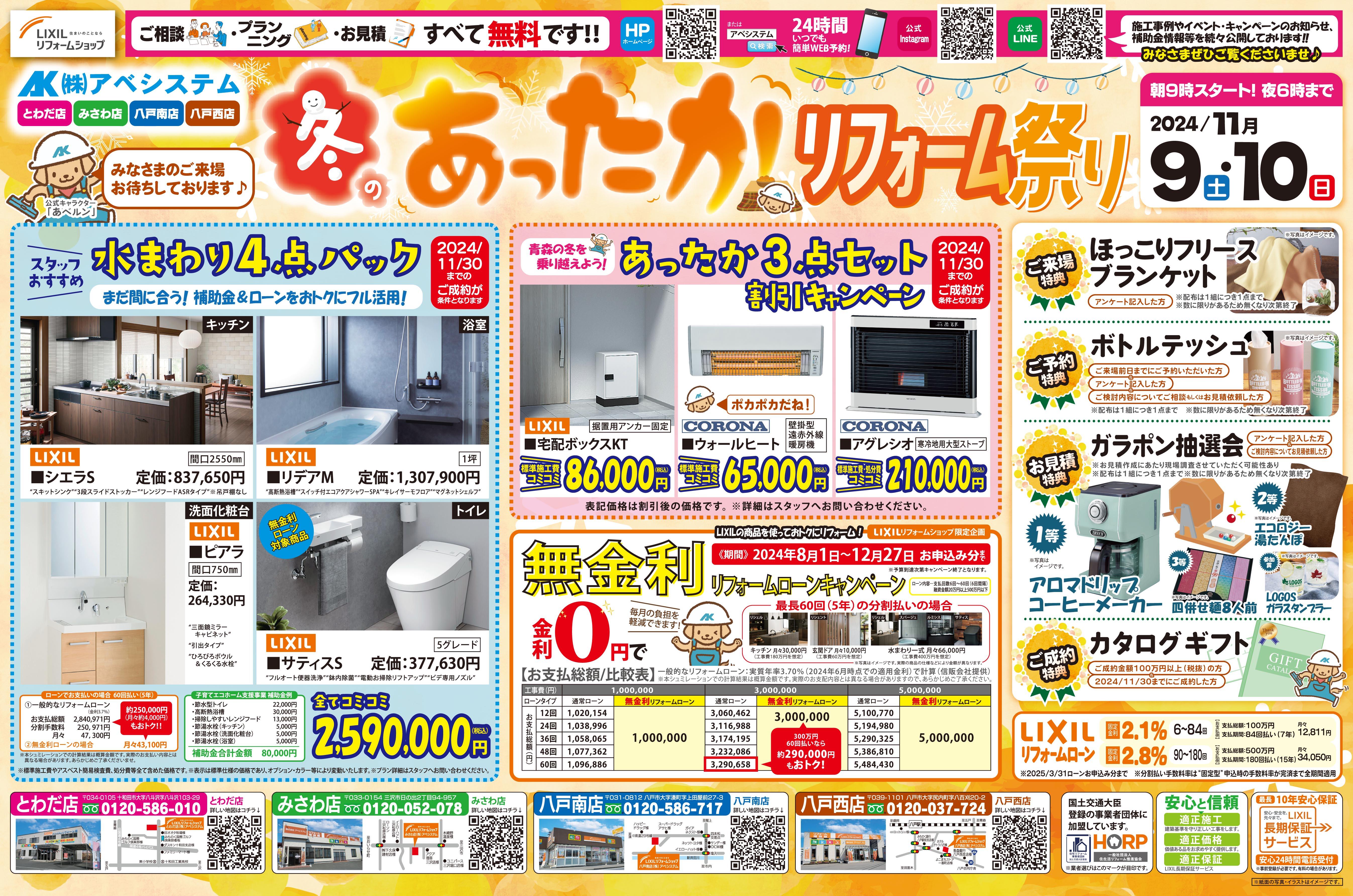 11月9日(土)・10日(日)の2日間、LIXILリフォームショップ全4店舗で『冬のあったかリフォーム祭り』を開催します!