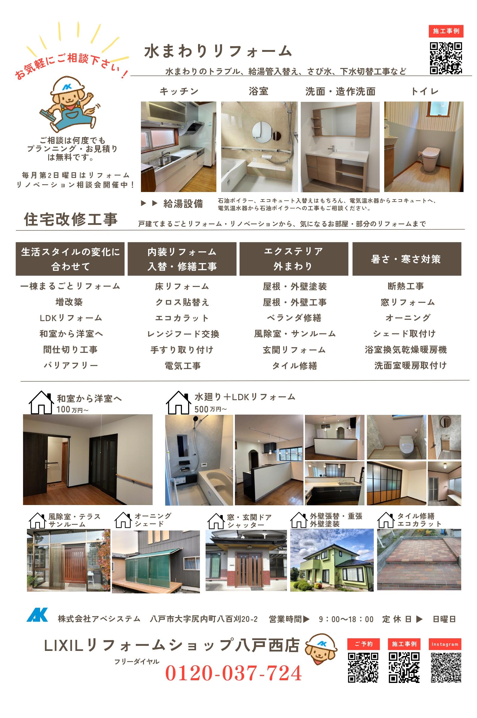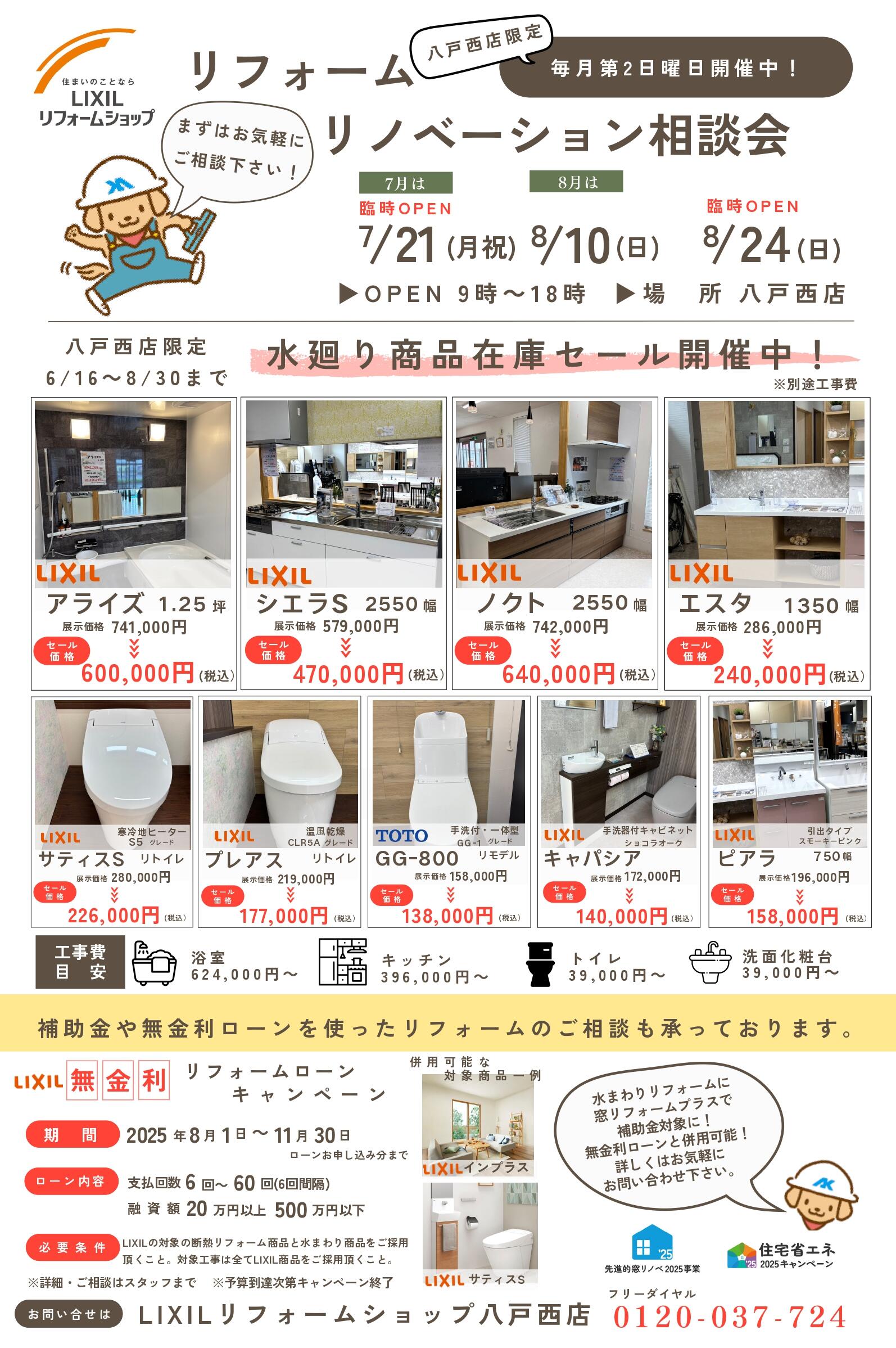 八戸西店限定 リフォームリノベーション8月の相談会は8/10(日)、8/24(日)