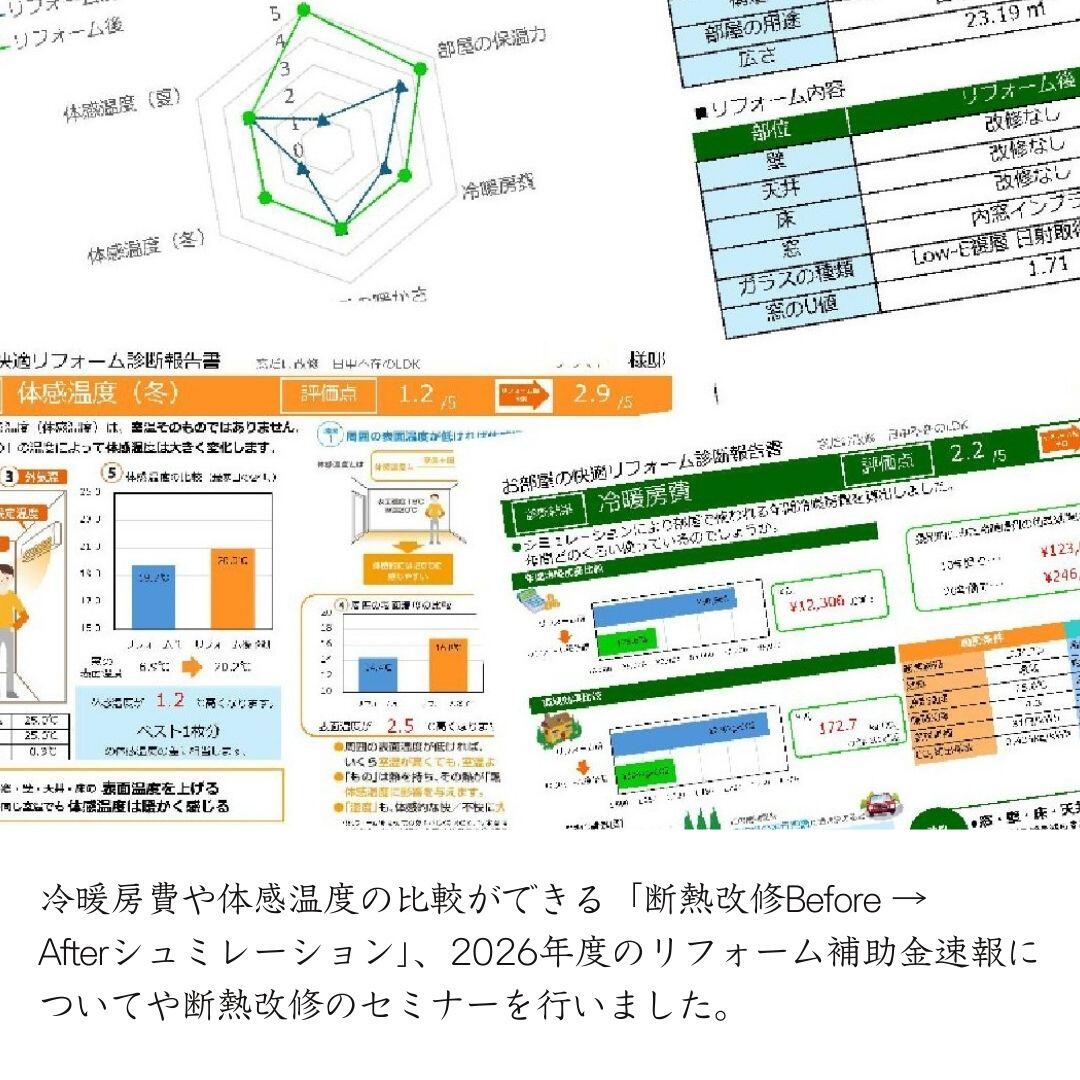 2026年度のリフォーム補助金速報についてや 断熱改修のセミナー、