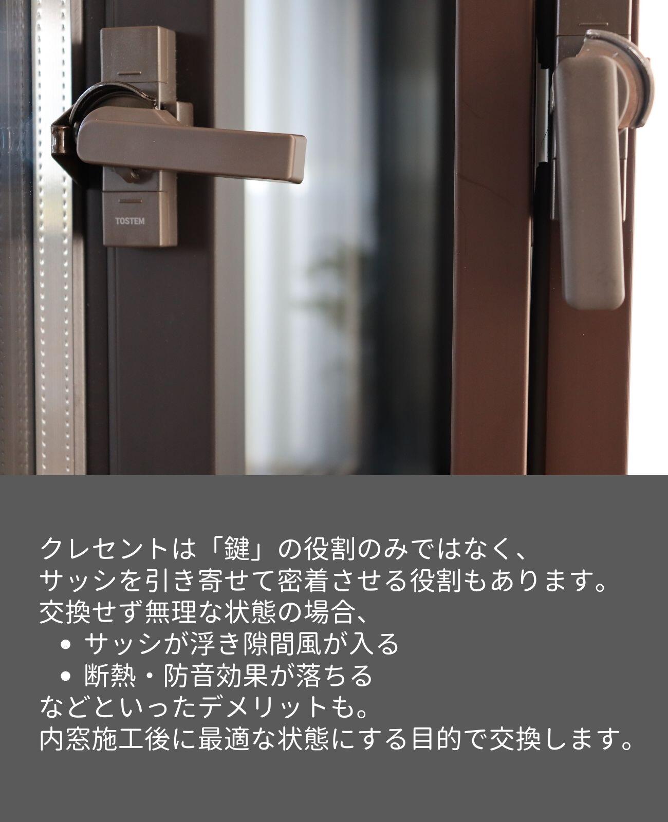 答え 内窓を設置する際「クレセント(鍵)の 柄が新設した窓にぶつからないよう短い物へ交換をしました。」