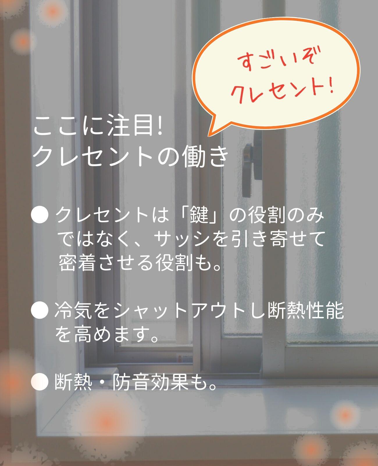 ● クレセントは「鍵」の役割のみではなく、サッシを引き寄せて 密着させる役割も。
