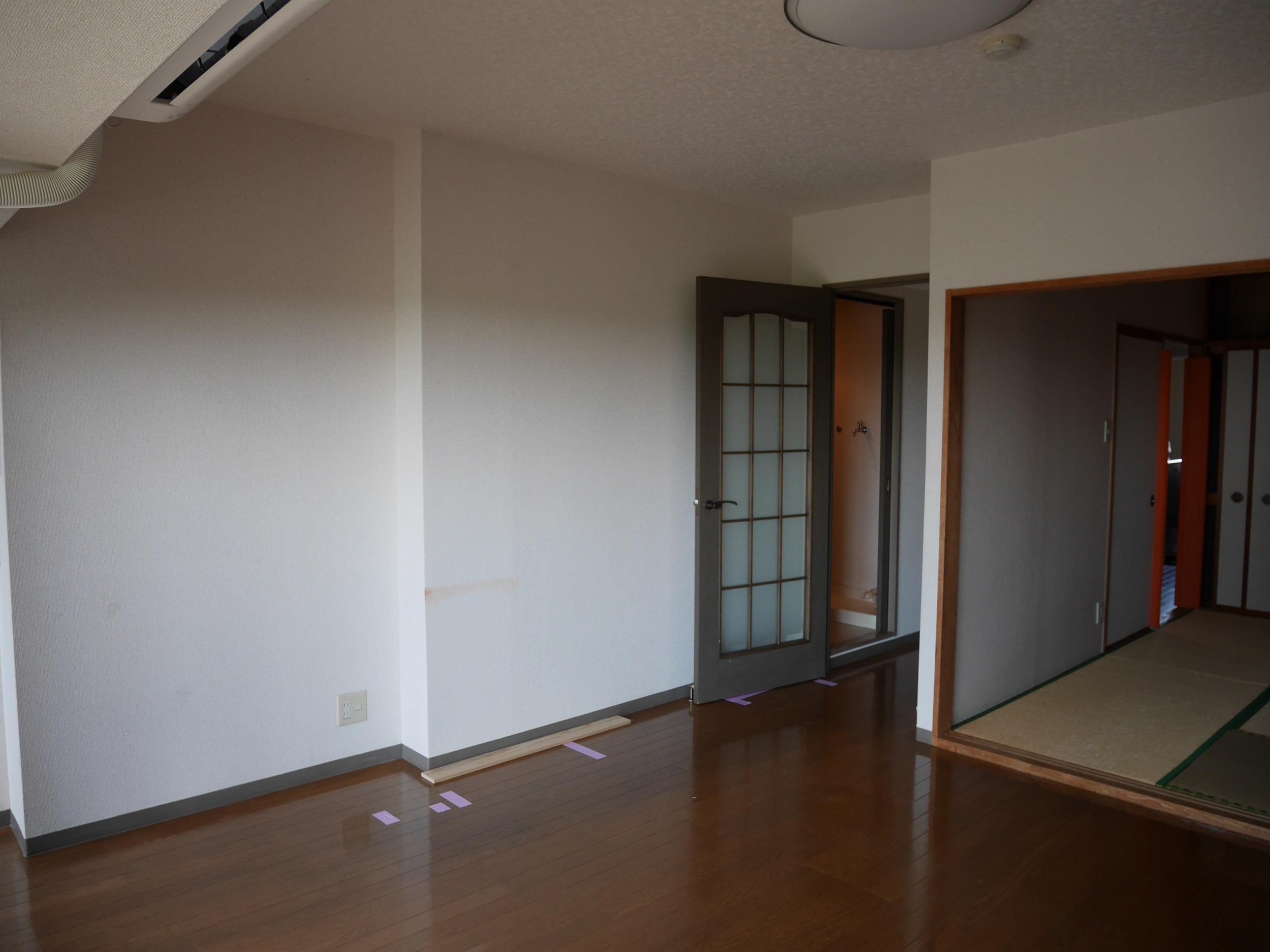床材、壁・天井クロスの張り替えを行い、お部屋全体が明るく、落ち着いた居間となりました。