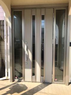 欄間を無くしたのでドアが大きくなりました。LIXIL「リシェント」を採用、外壁を傷つけないカバー工法で1日で工事が出来ます。