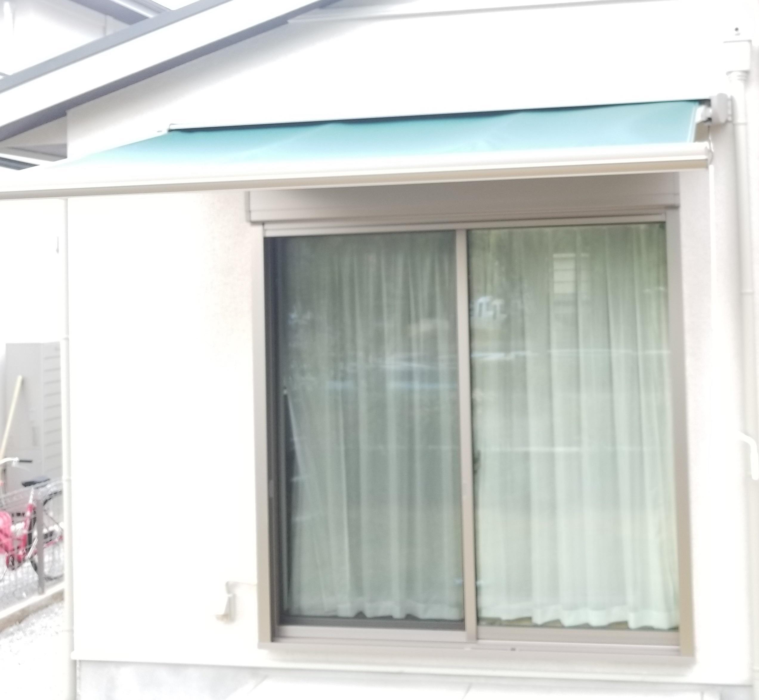 室内空間を紫外線から守るべく、オーニングを設置しました。 熱線遮断にもなっているので、夏の日差しが抑えられるかと思います。