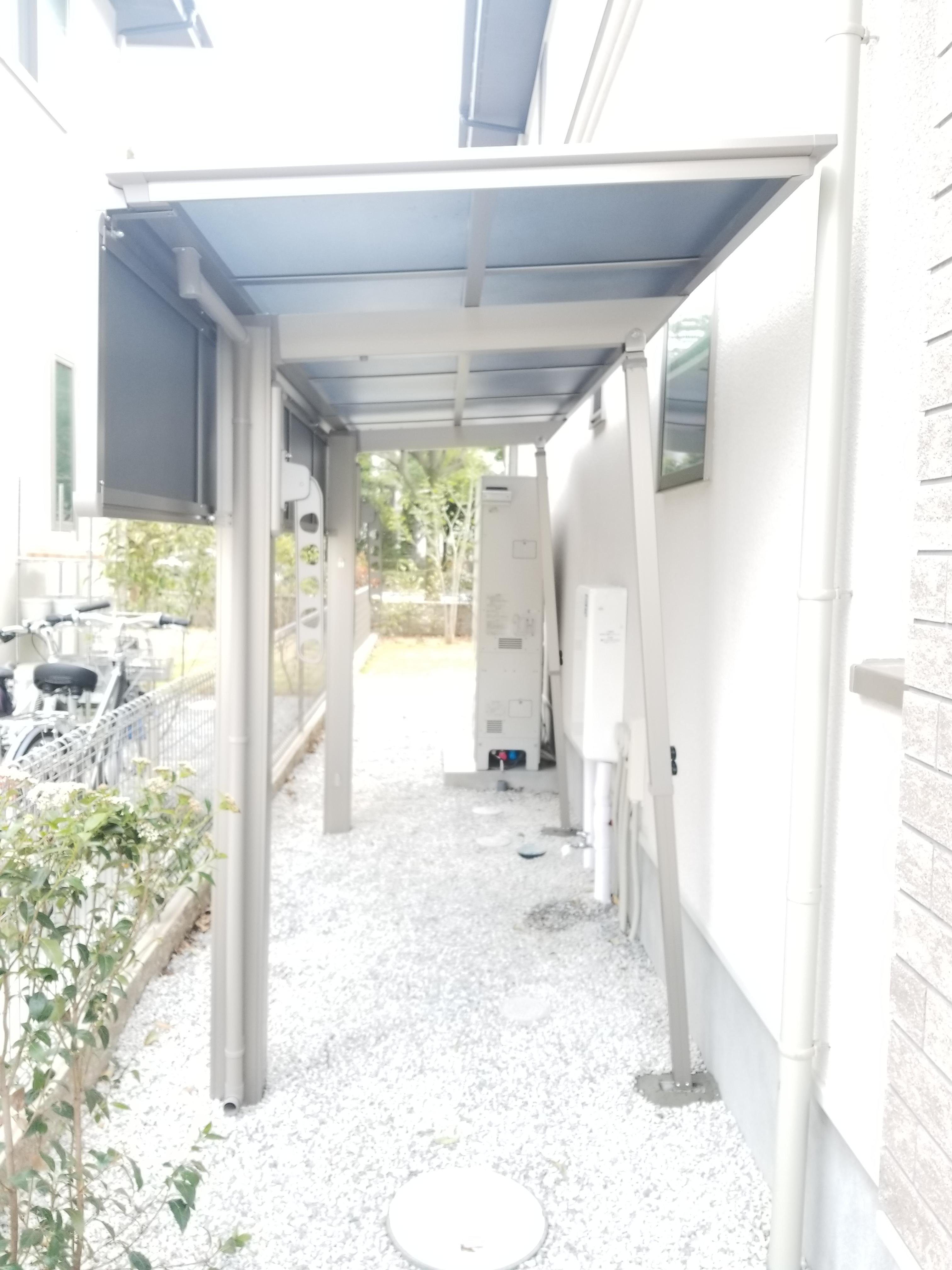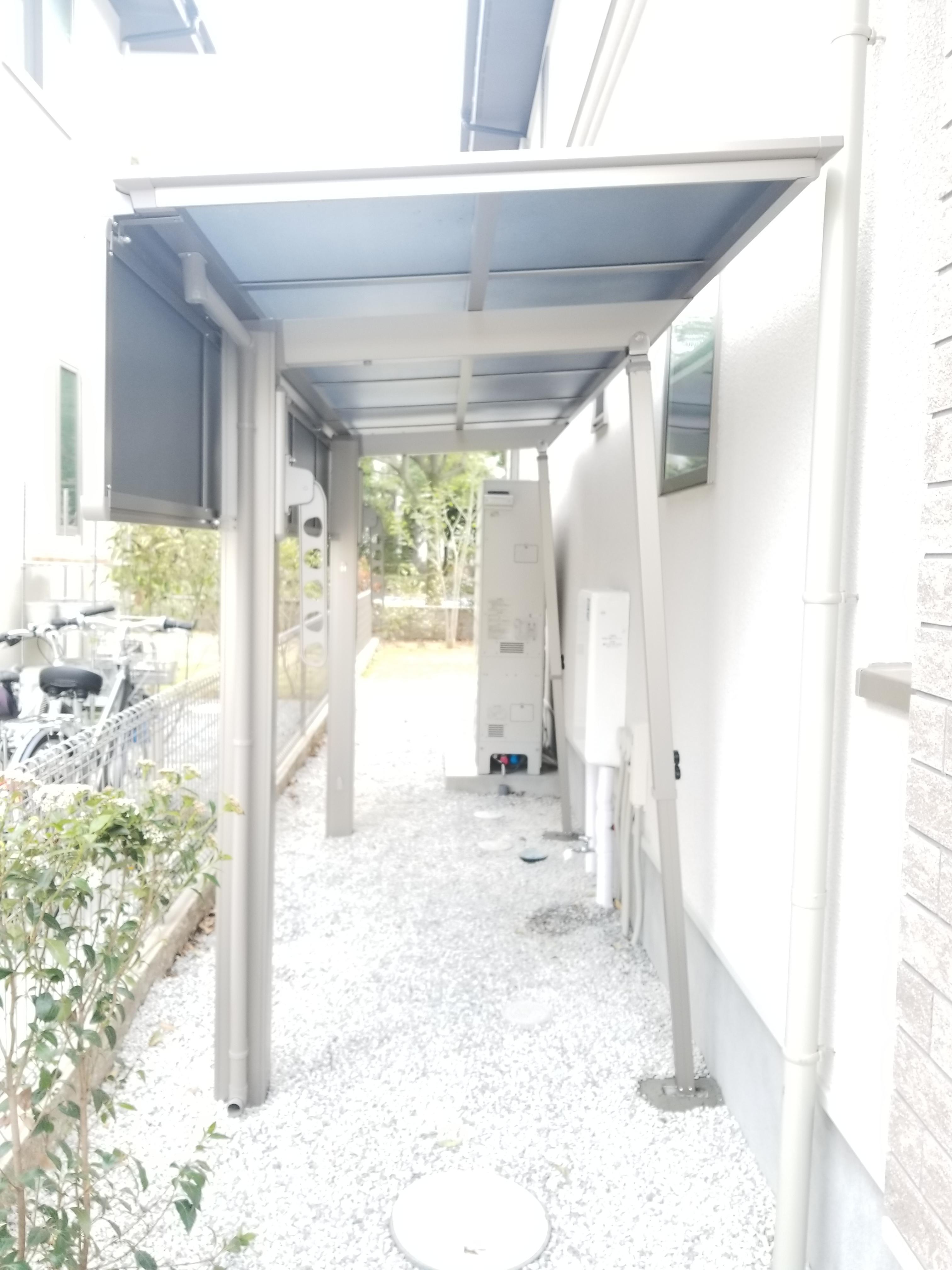 家とフェンスの間を有効活用し、サイクルポートを設置。 雨から自転車や荷物が守れます。