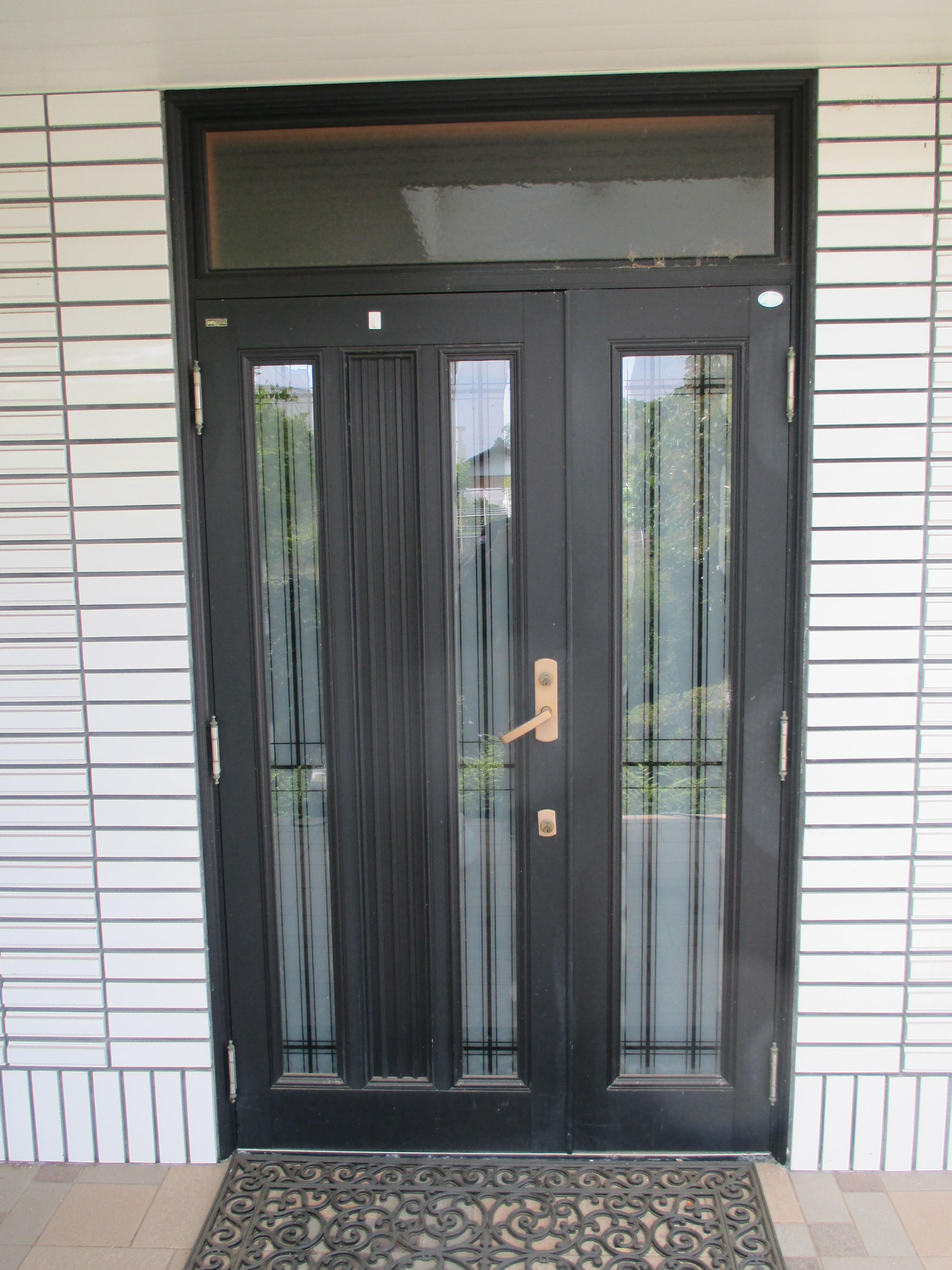 欄間無しにしたことでガラス面は減りましたが、スタイリッシュで、 さらにカッコよさが増した玄関ドアになりました。