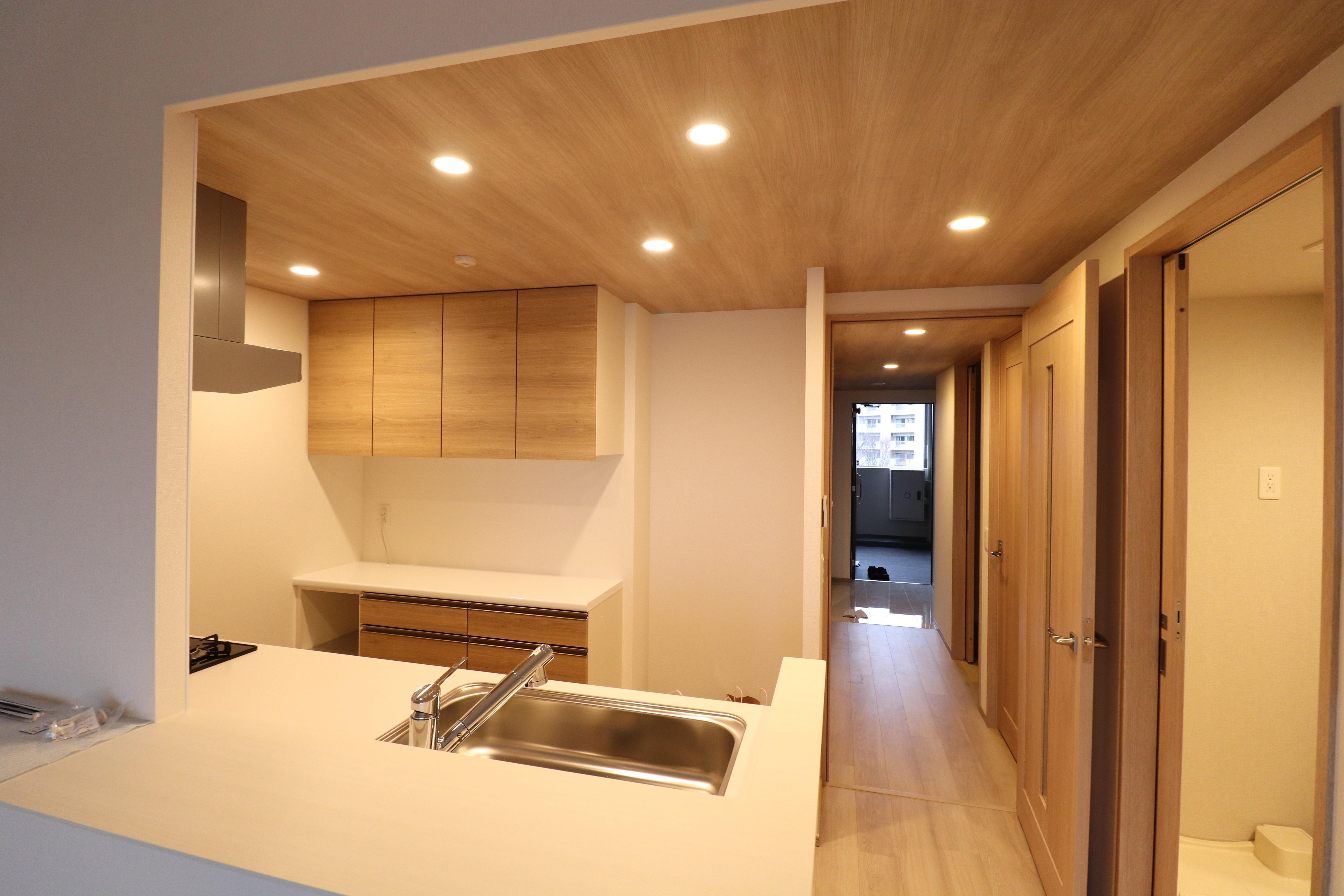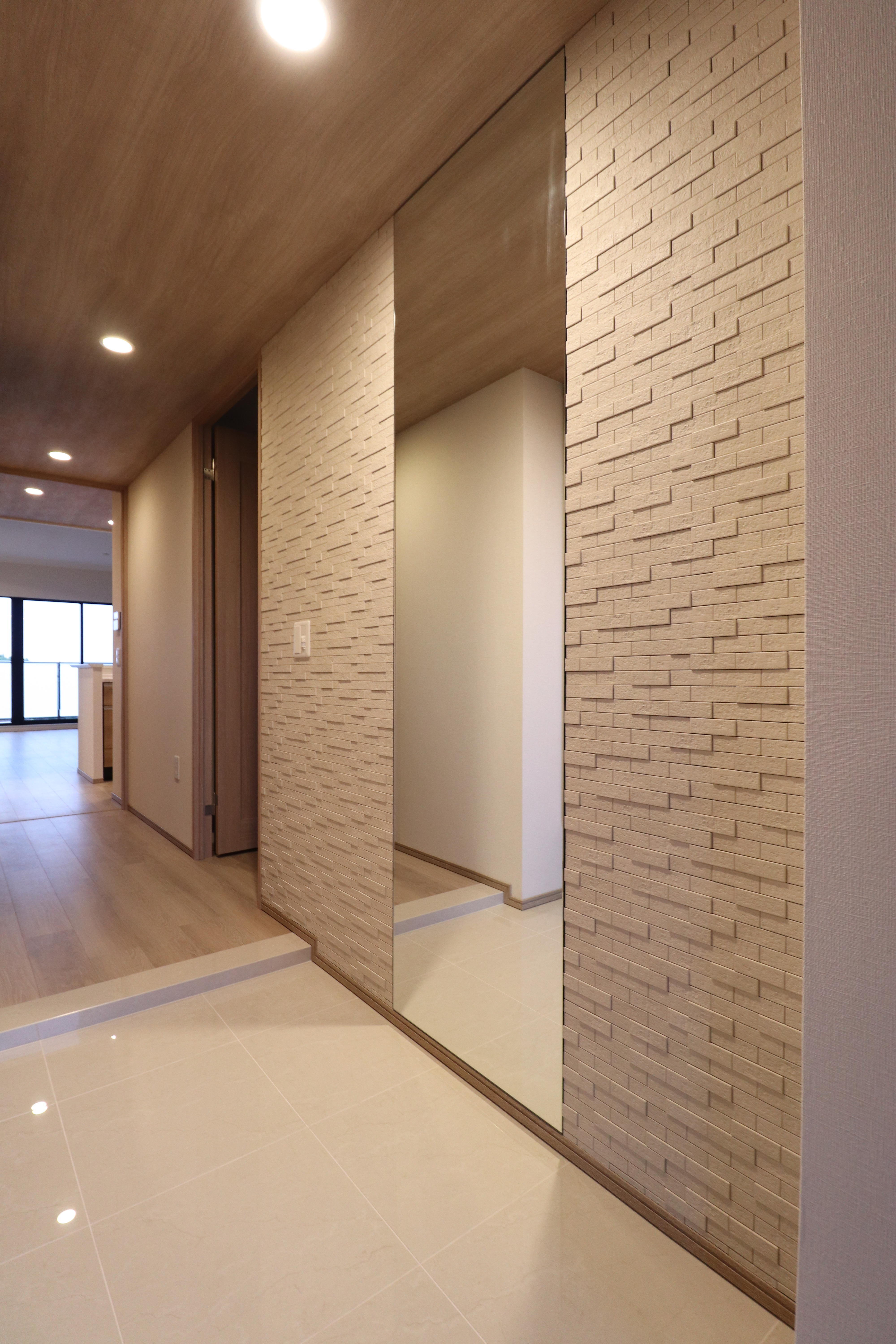 新築マンションの内装工事を行いました。 玄関にはエコカラット、各部屋の壁一面のクロス貼替、 洗面化粧台チャイルドミラー部にタイルを貼りました。