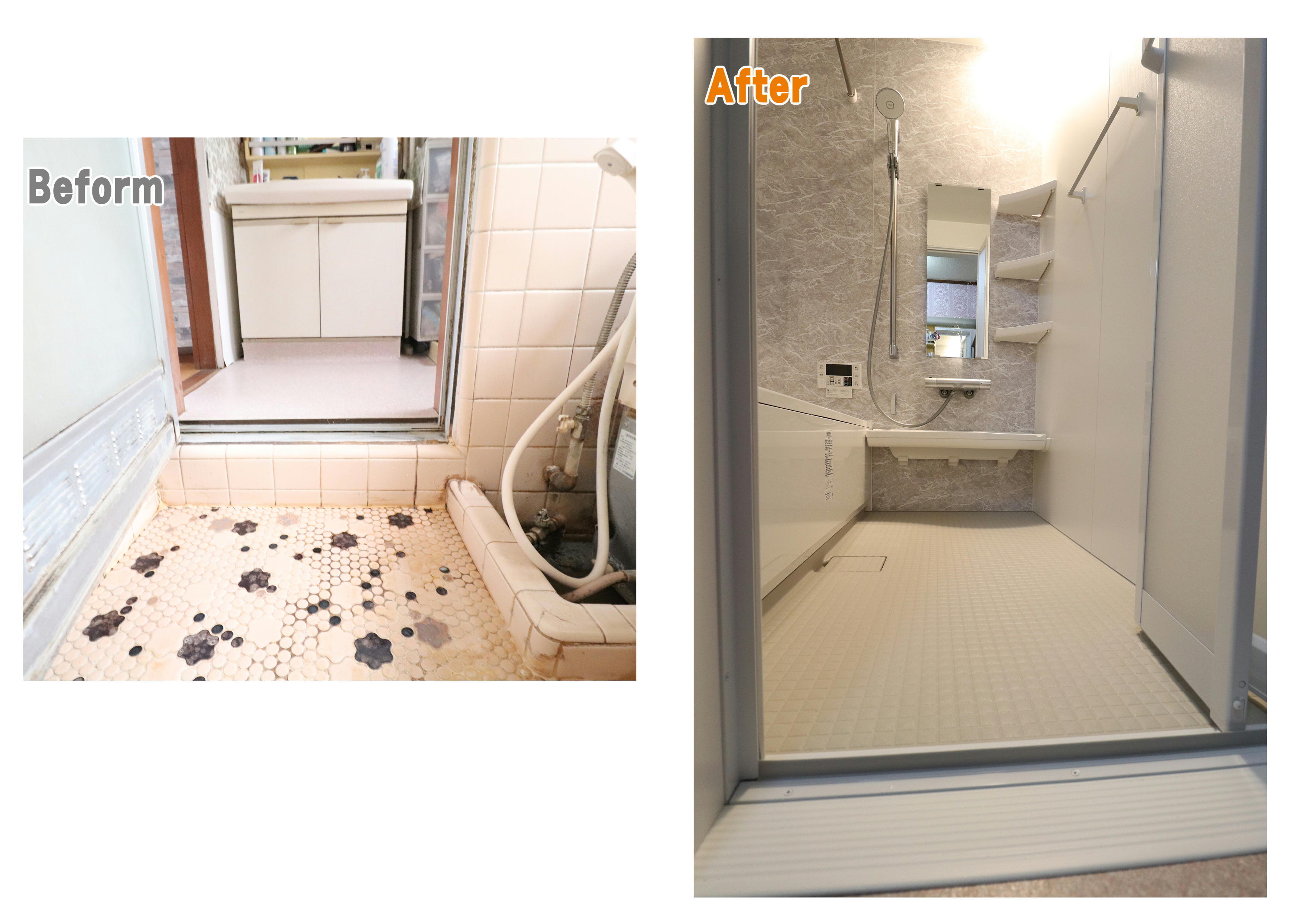 築41年でタイルの浴室からユニットバスへの工事と 玄関ドアも交換しました。