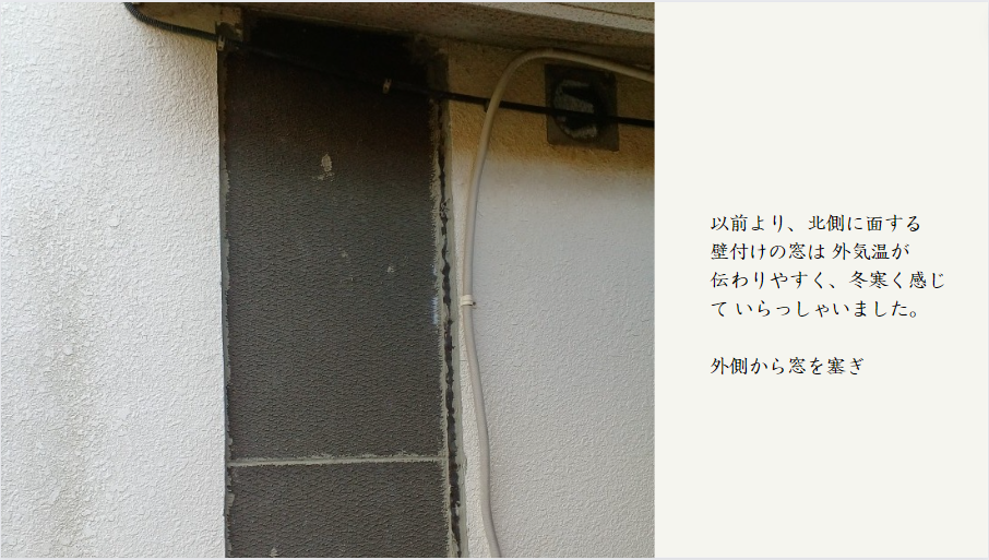 設備の老朽化と以前より、北側に面する壁付けの窓は