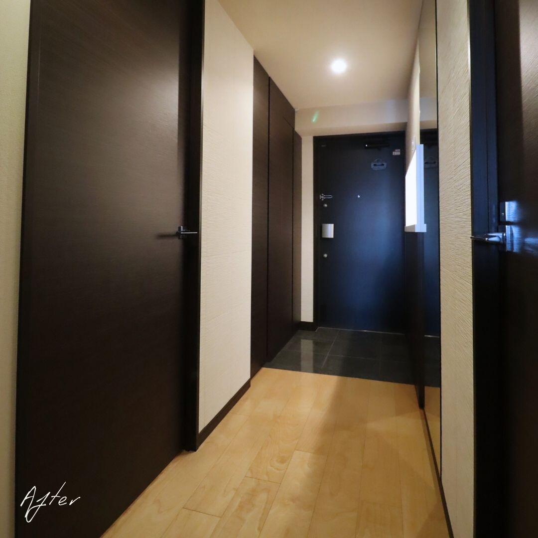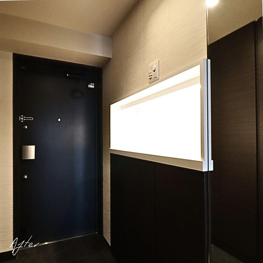 暗くなりがちな壁に囲まれた分譲マンションの玄関、毎日使う玄関を明るくされたいとリフォームのご依頼をお受けしました。