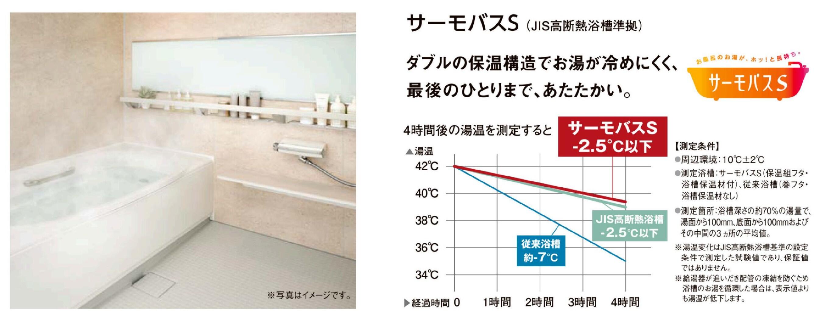 水廻り設備に経年劣化を感じられ、 バスルームと洗面脱衣所のリフォームをされました。 ゆっくりと入浴を楽しむことが多いとうかがいバスタブ浴を重視したBタイプを。 ストレートライン浴槽は肩までしっかり温まることができます。また、直線的なフォルムがスタイリッシュな印象が特徴です。 高断熱仕様の浴槽サーモバスSで冬の季節に備え安心な浴室になりました。 併せてリフォームされた洗面化粧室は、バスルームとあわせたカラーコーディネイトされ、スタイリッシュな空間になりました。
