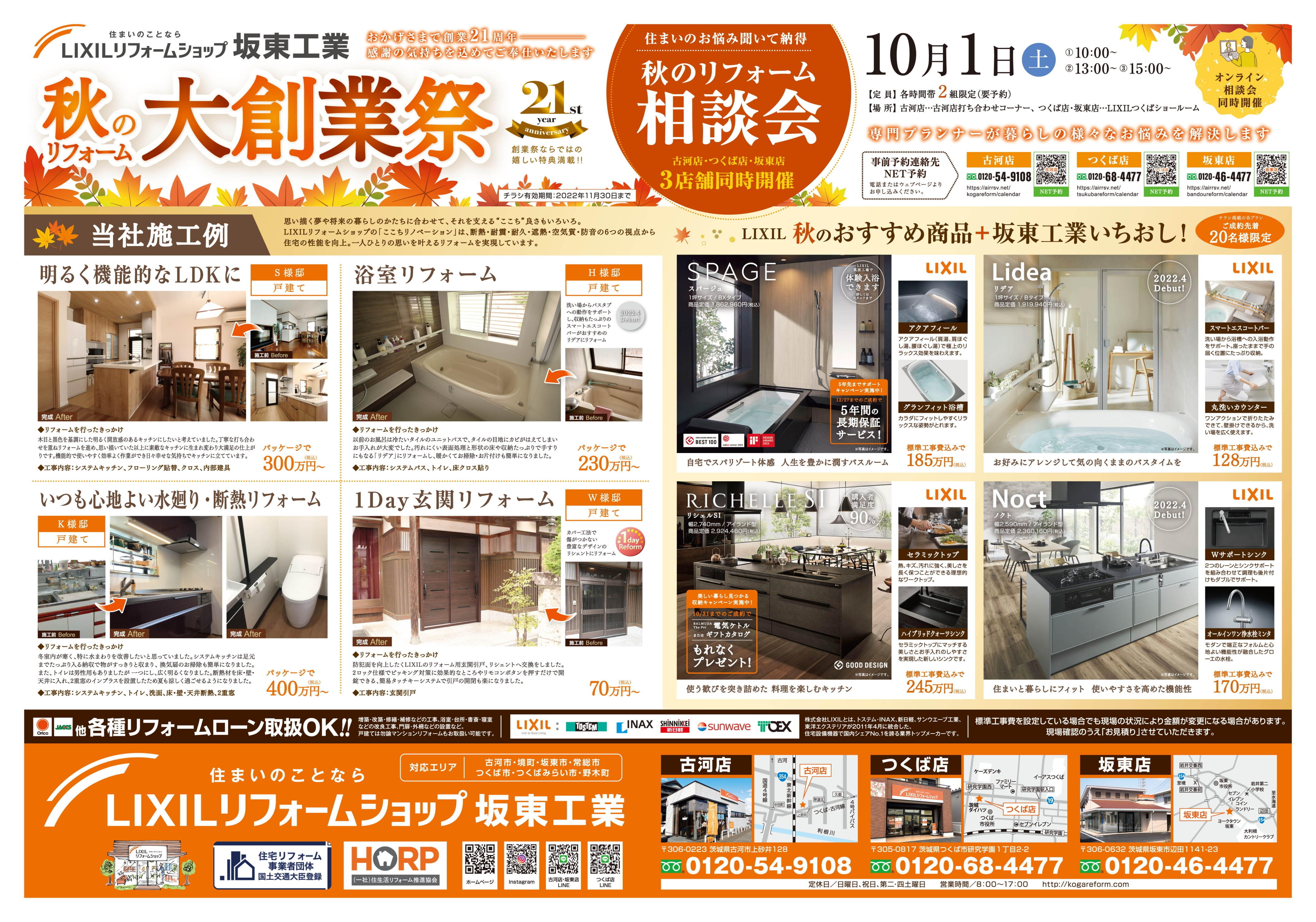 21周年を記念して、「秋のリフォーム大創業祭」チラシを