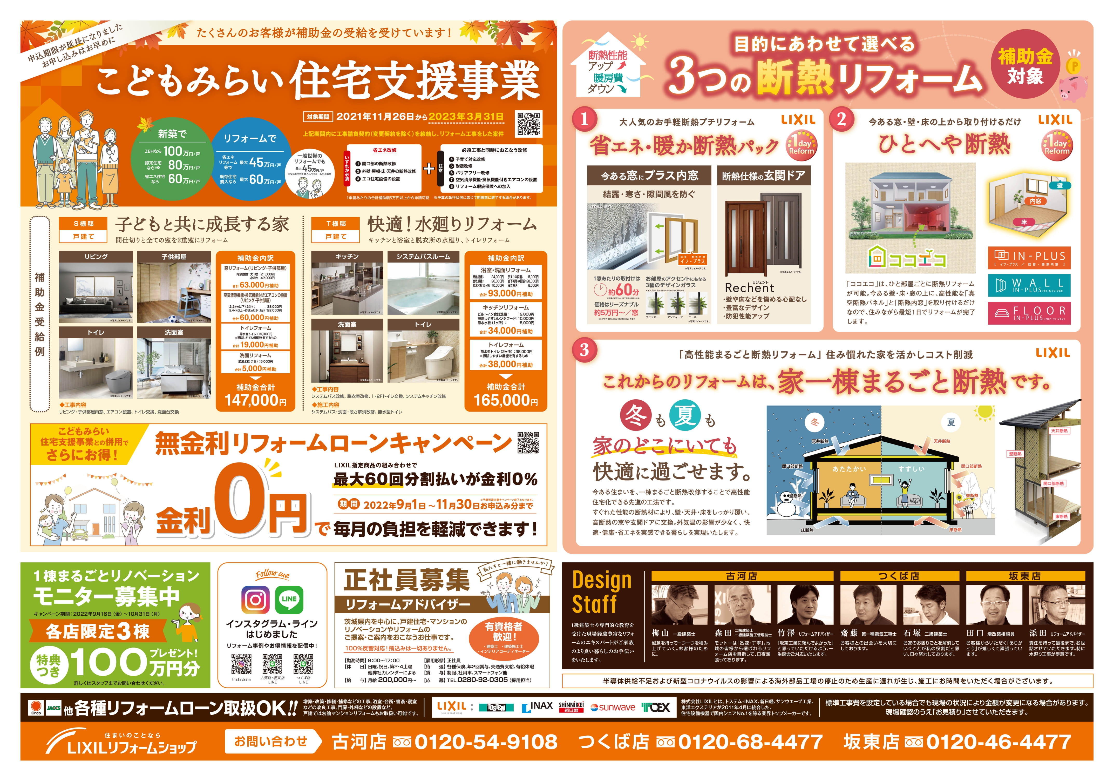 こどもみらい住宅支援事業、断熱リフォームなど・・・