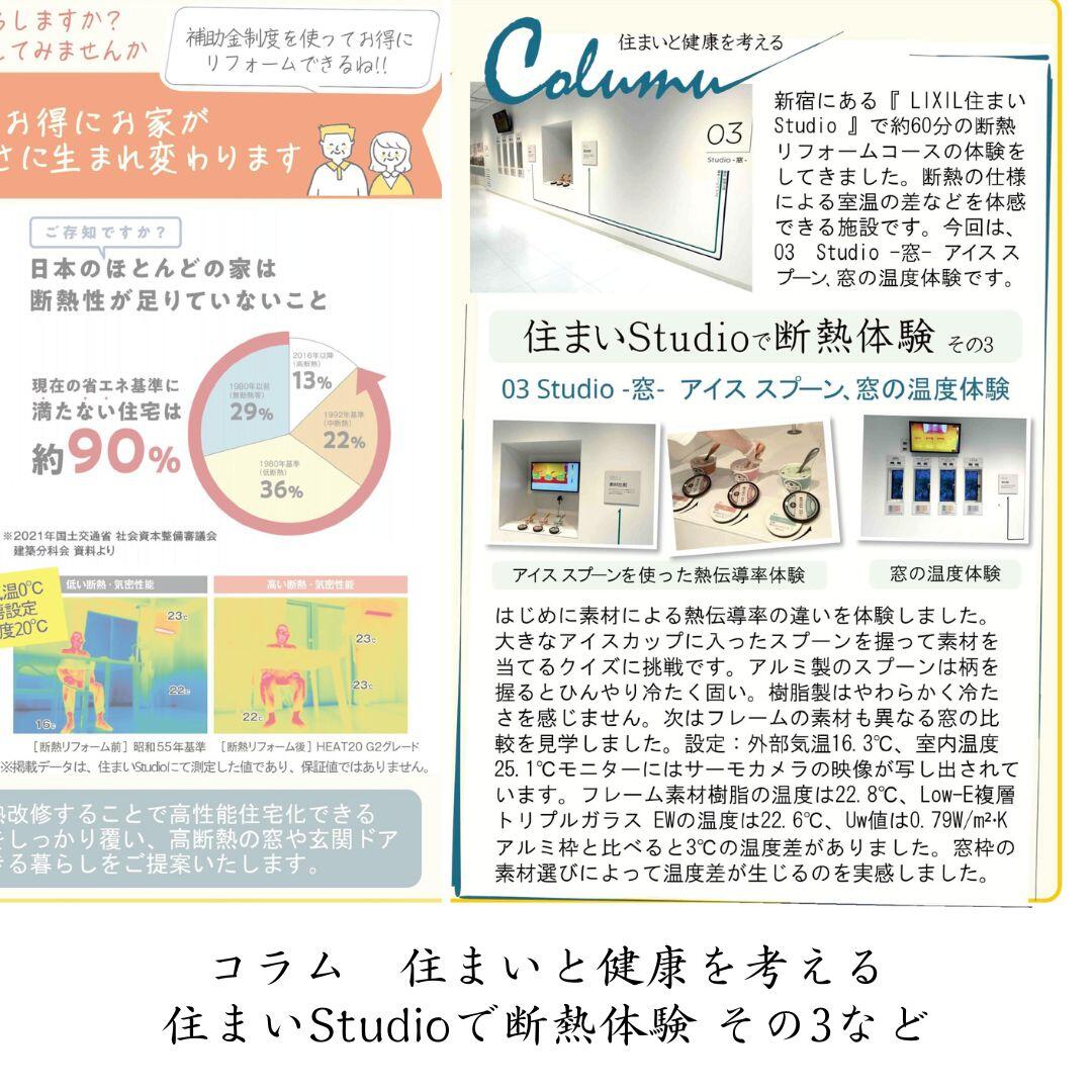 コラム 住まいと健康を考える 住まいStudioで断熱体験 その3などです。