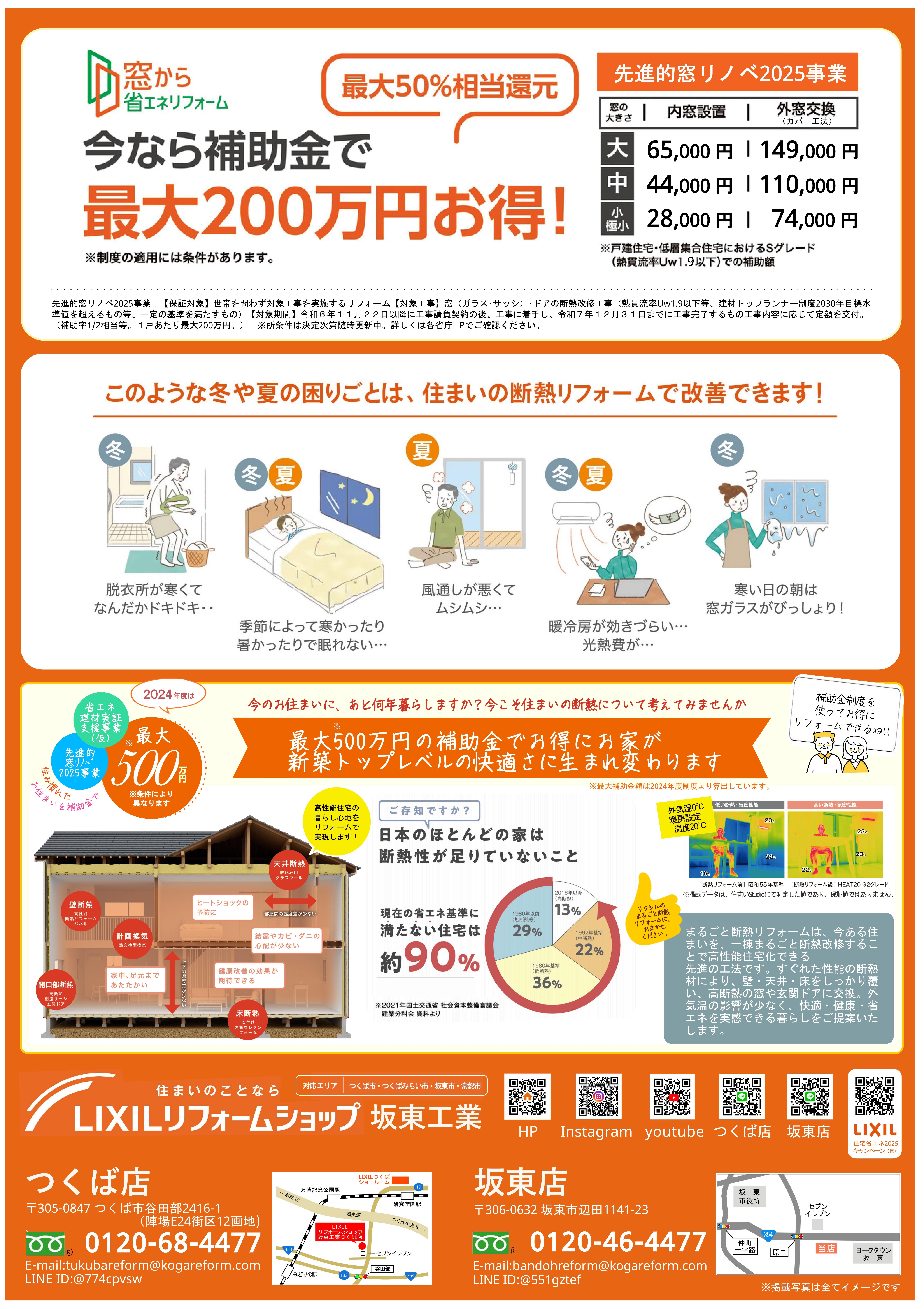 裏面は、先進的窓リノベ2025事業の内容や