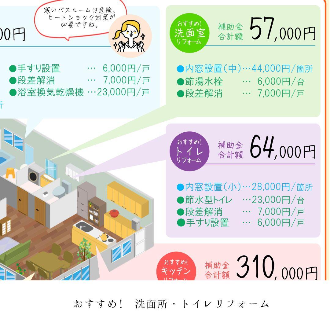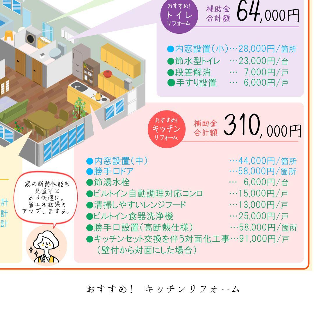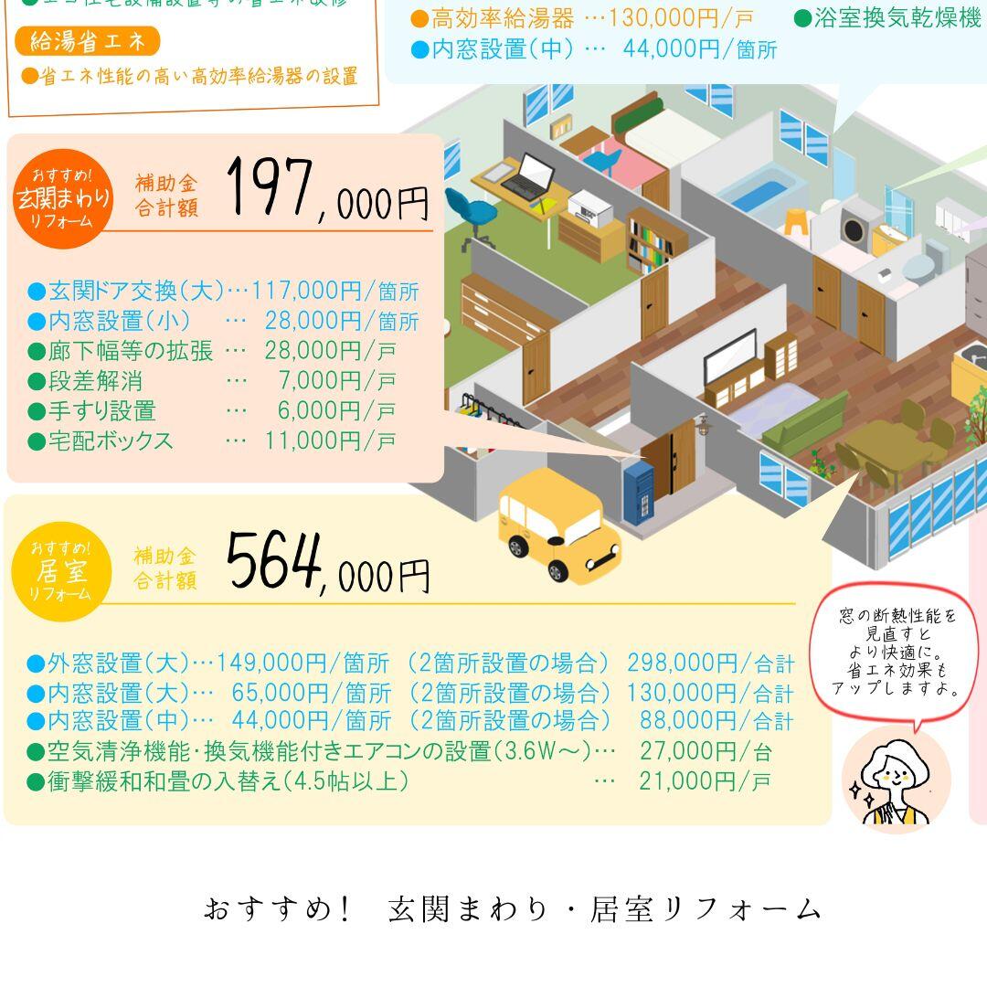 リフォームをする箇所ごとの補助金内容を