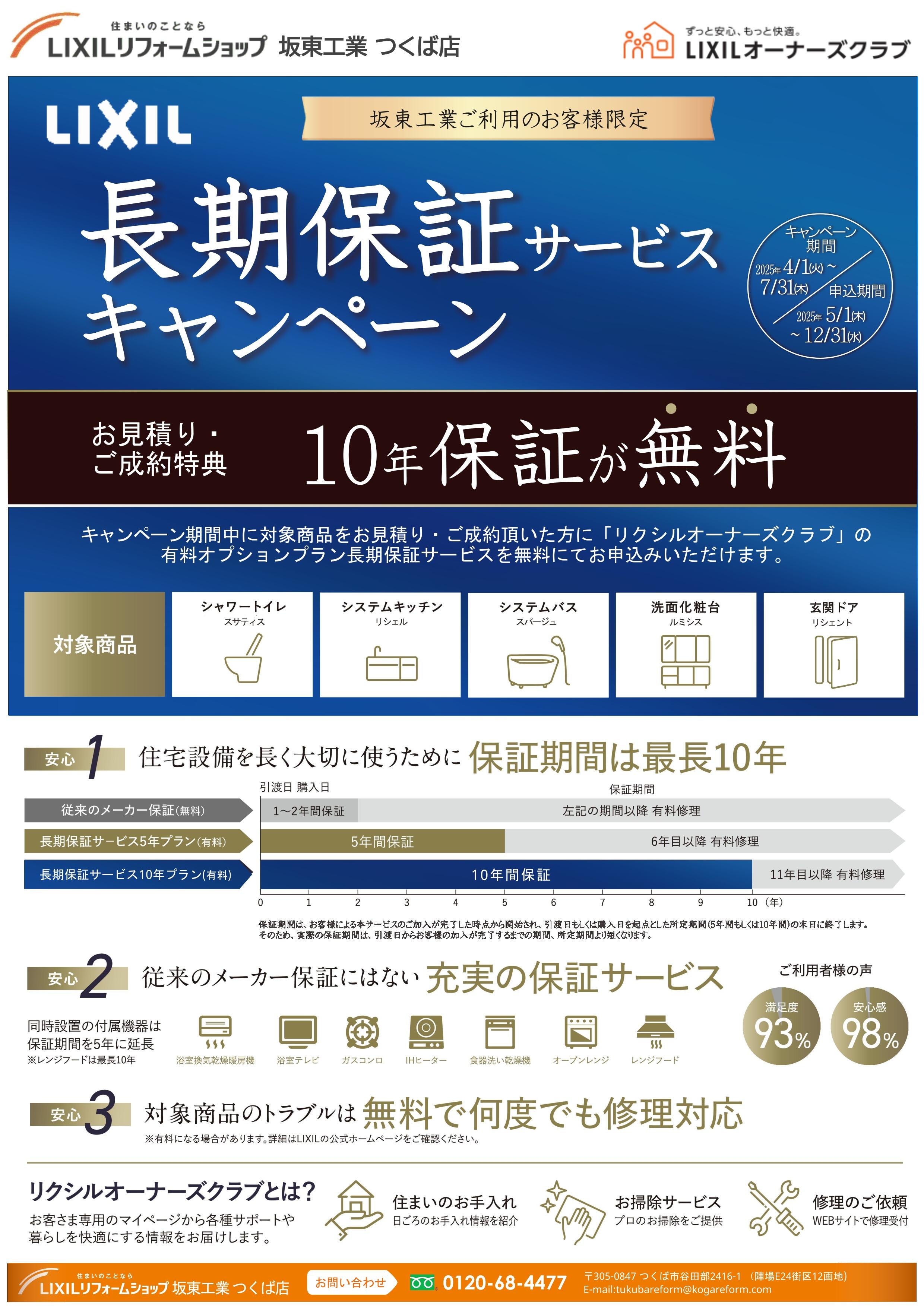 弊社の『 LIXIL長期保証サービス 』のご案内はこちらから