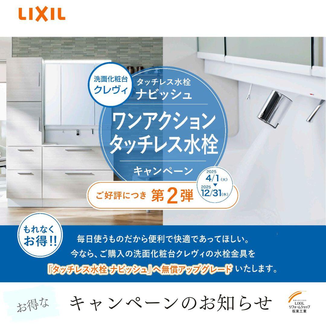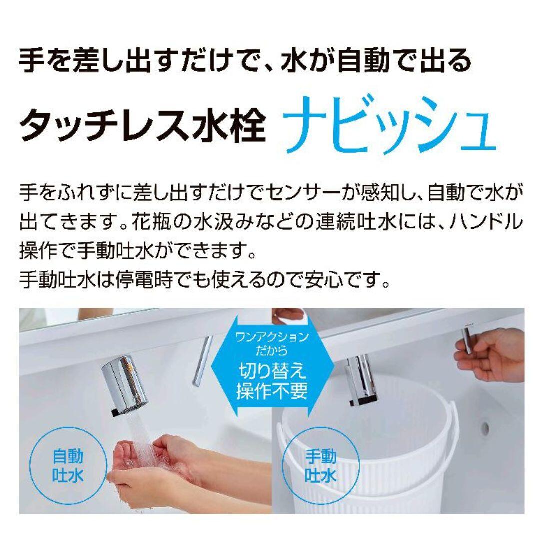 毎日使うものだから便利で快適であってほしい。今なら、ご購入の洗面化粧台クレヴィの水栓金具を『 タッチレス水栓 ナビッシュ 』へ