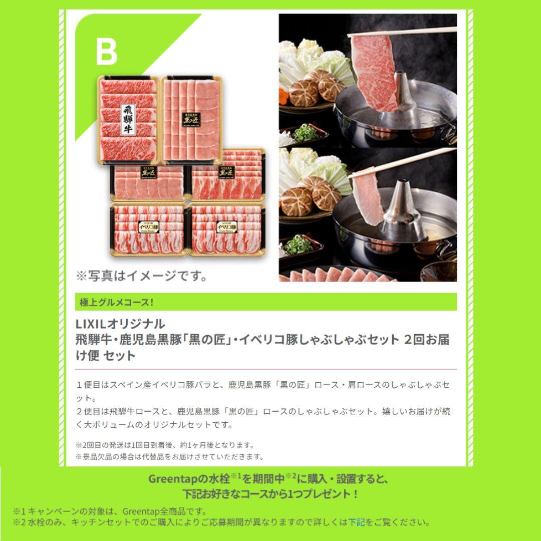Greentapの水栓※1を期間中※2に購入・設置すると、下記お好きなコースから1つプレゼント!