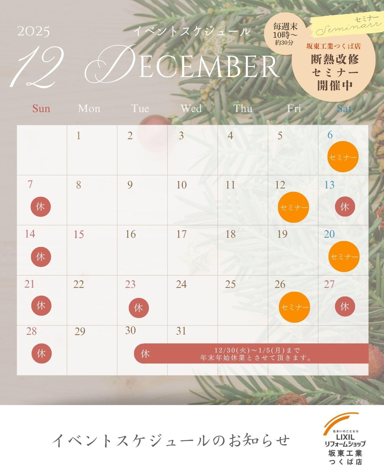 11~12月のイベントスケジュールのお知らせをいたします。