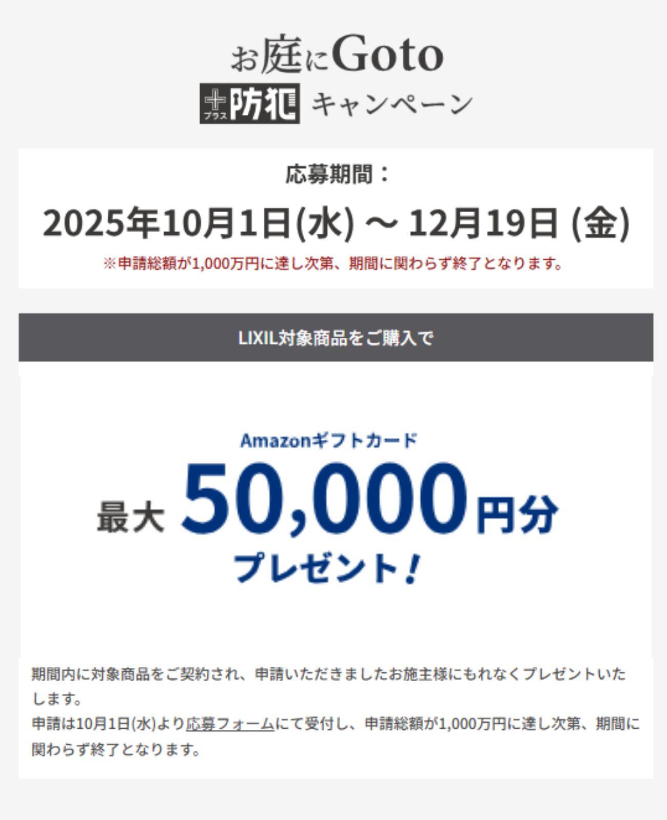 お庭にGoToプラス防犯キャンペーンのお知らせです。
