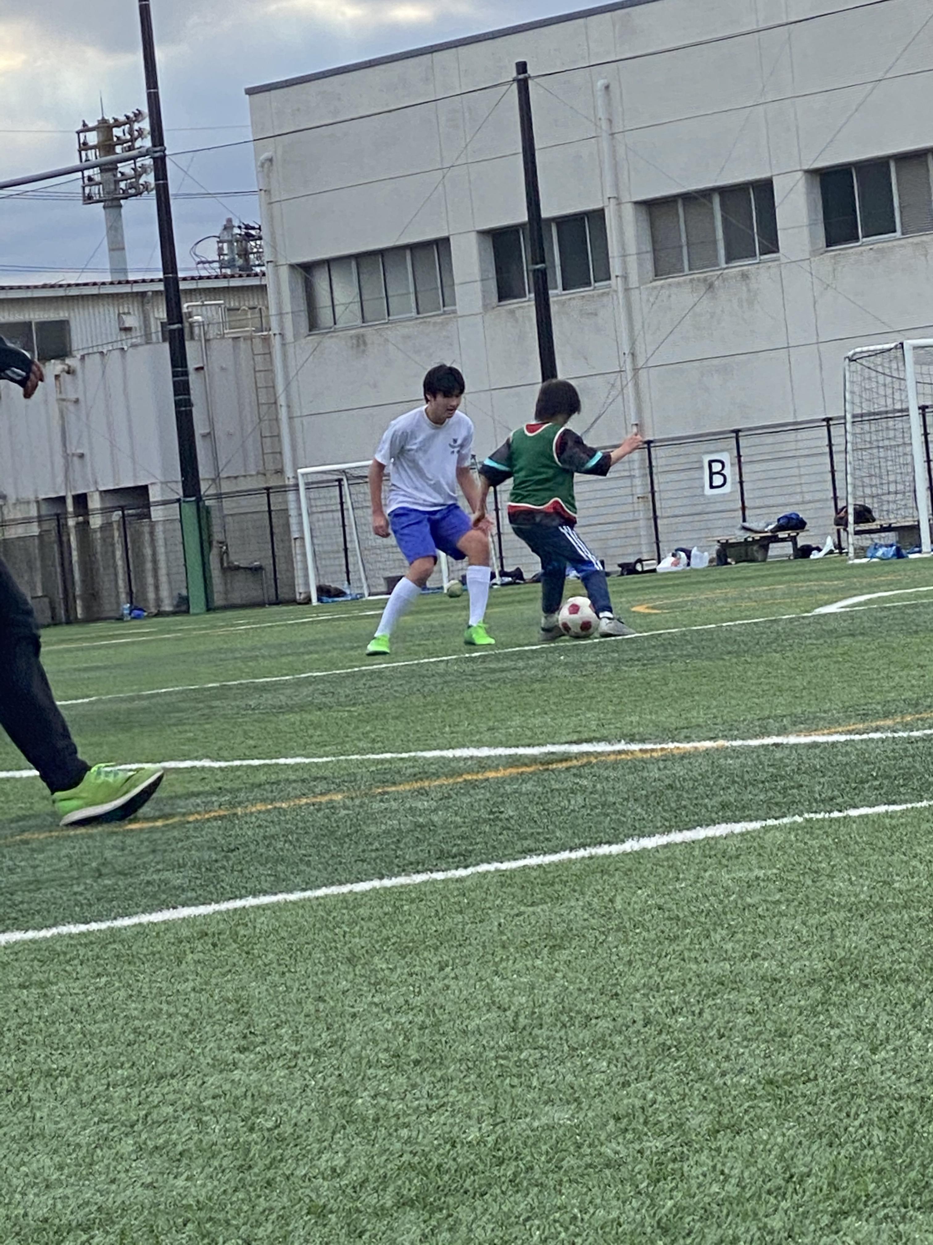 (三男の初蹴り(親子サッカー)で親父は引退。代わりに次男出場で兄弟初対決です。)