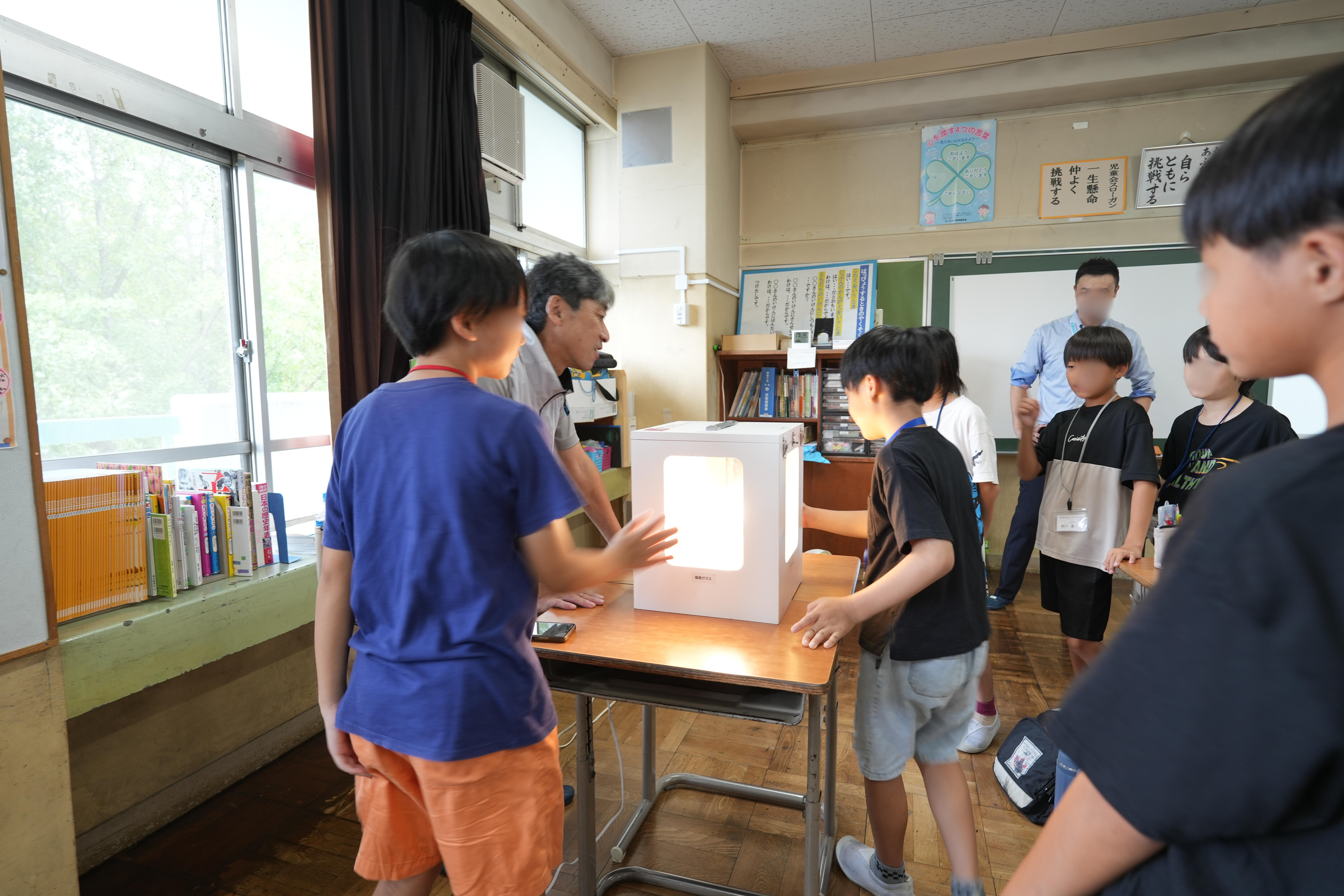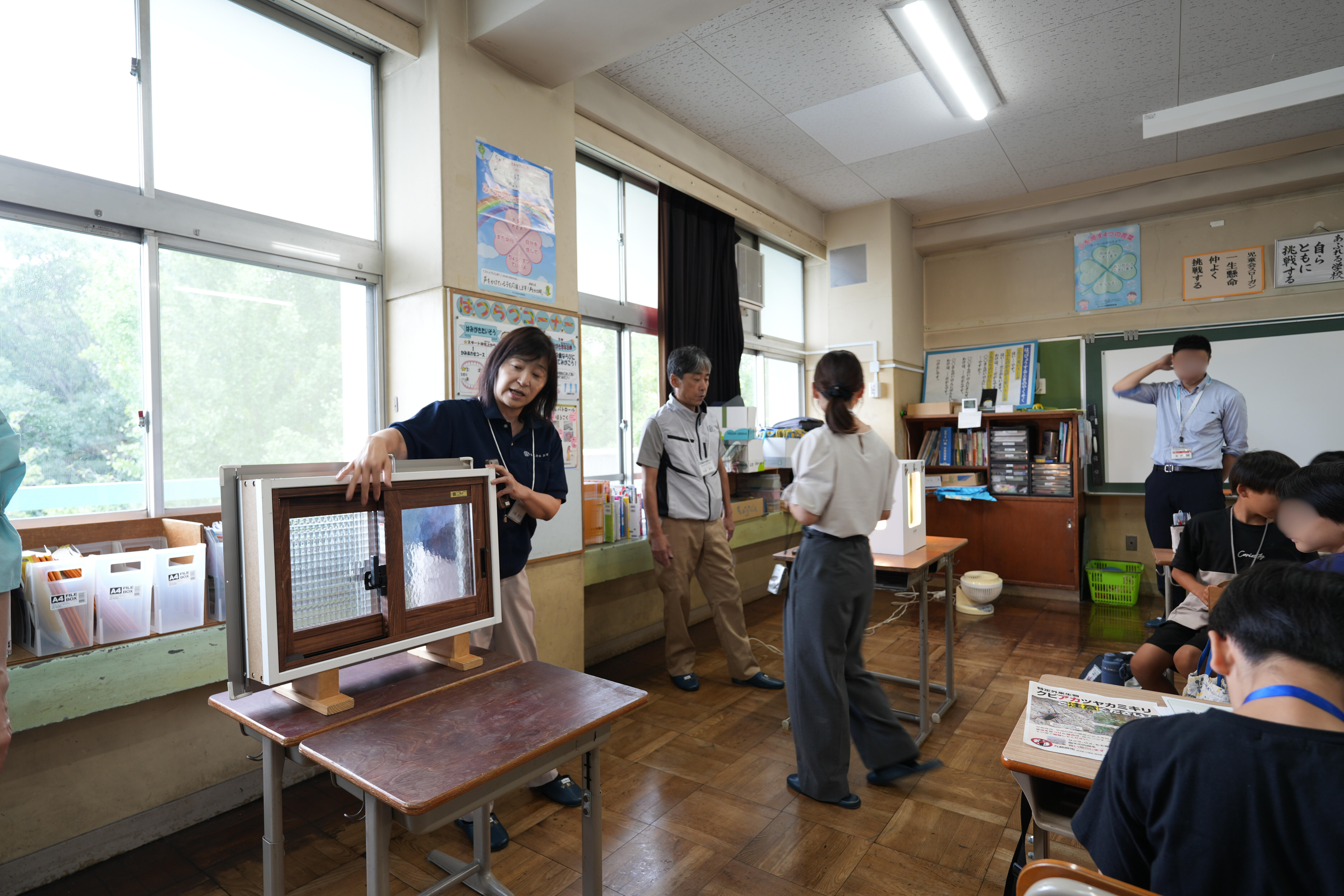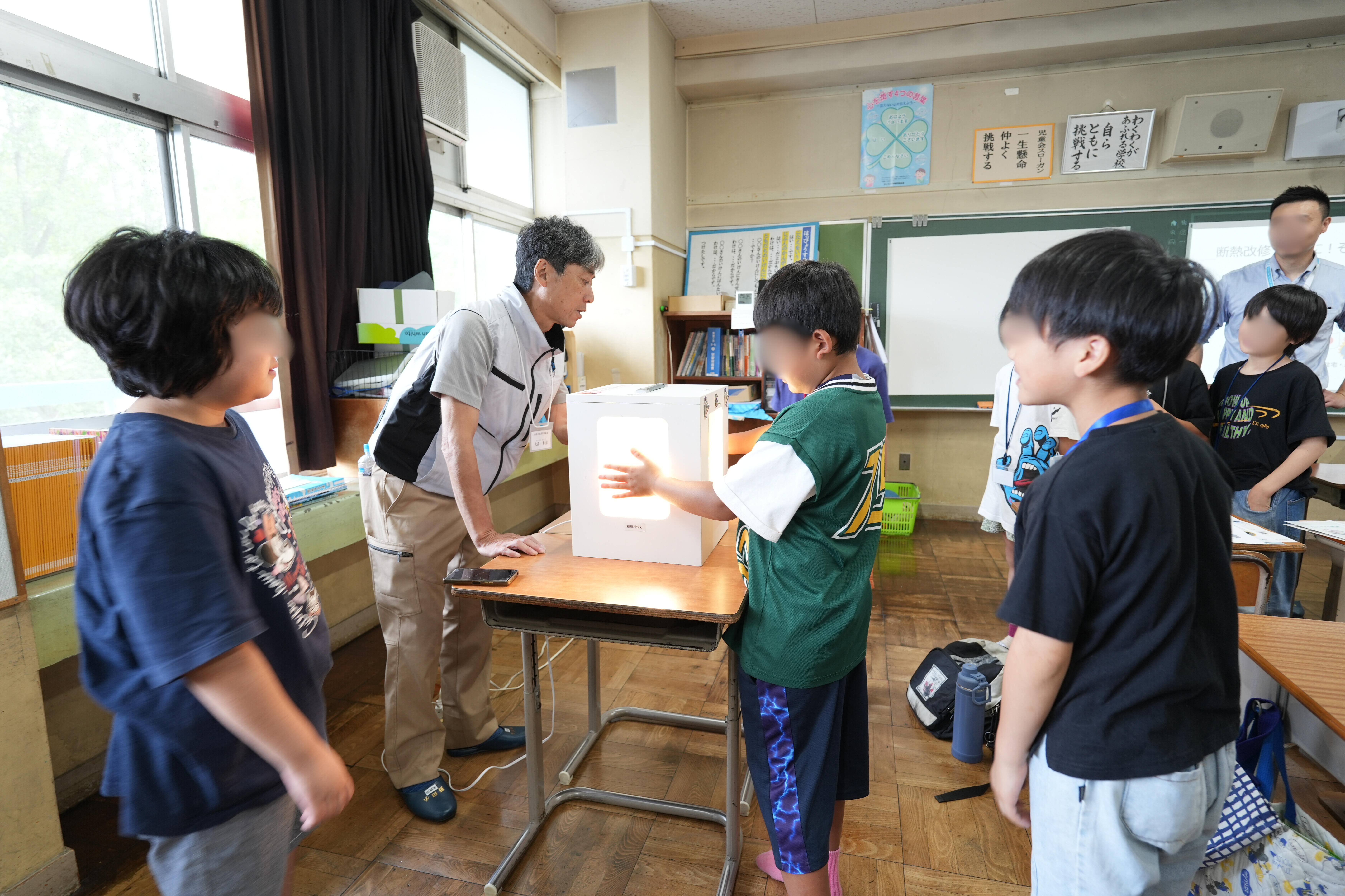 環境学習の要素を加えながら学校の教室で子どもたちとDIYで断熱工事をするもの。
