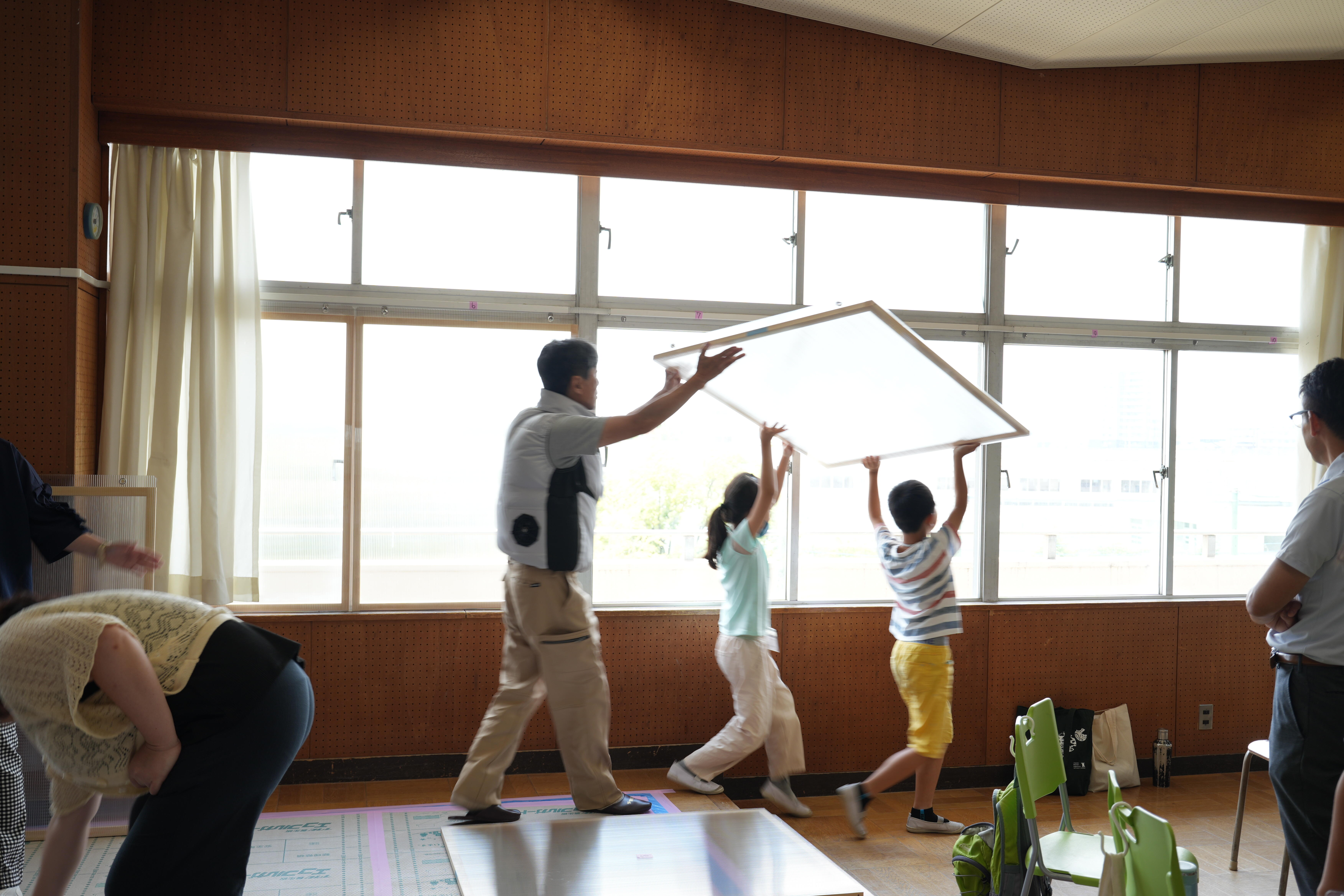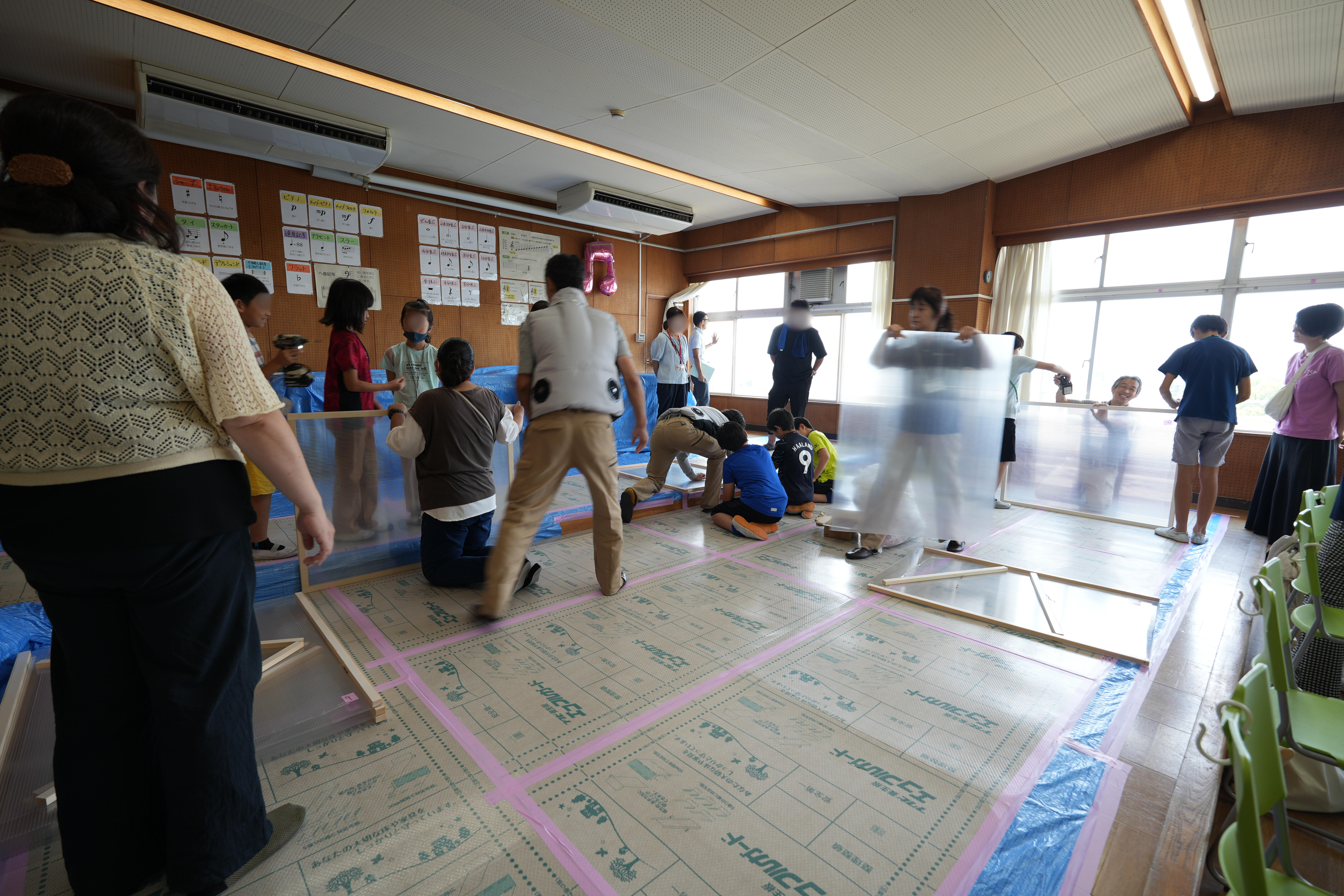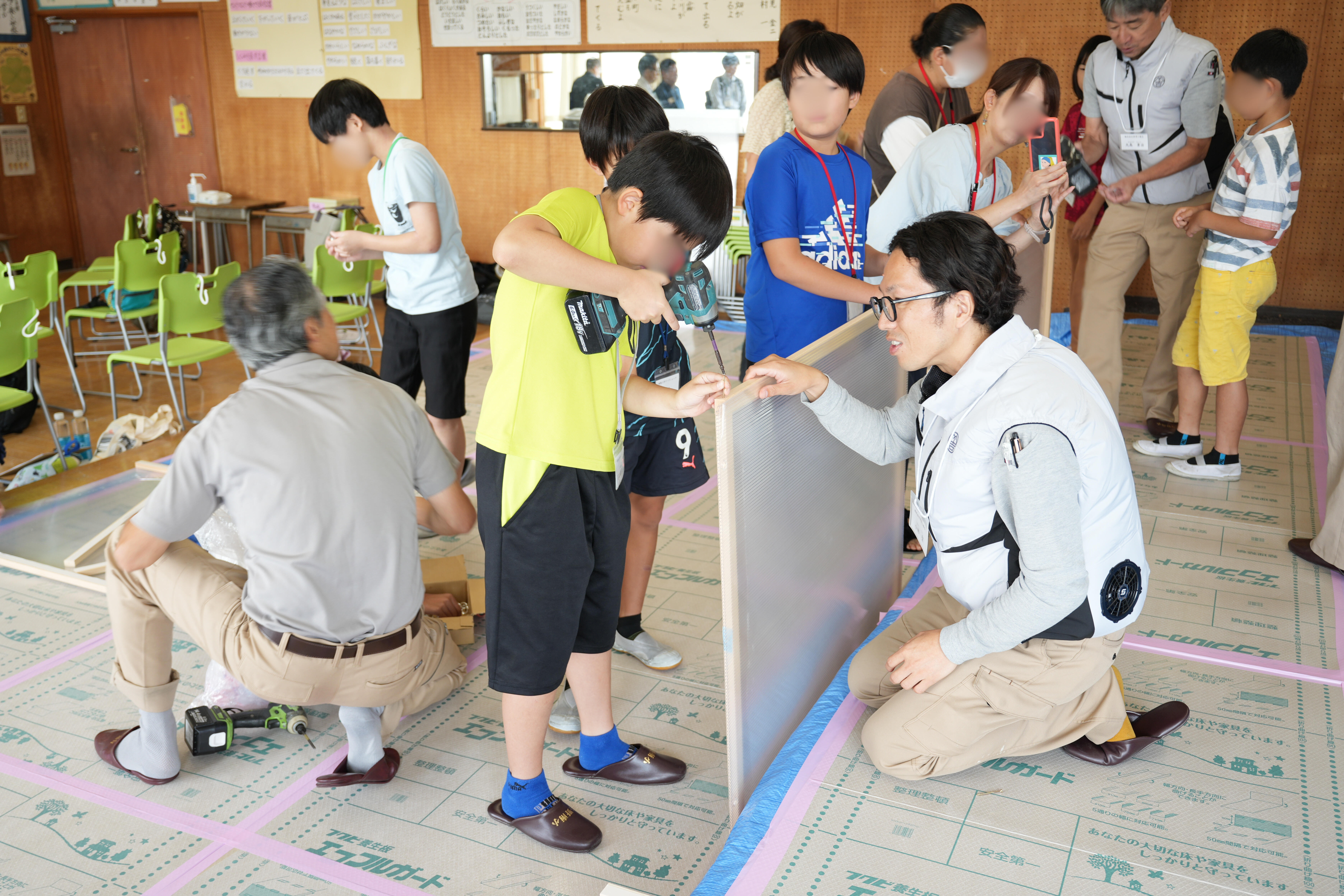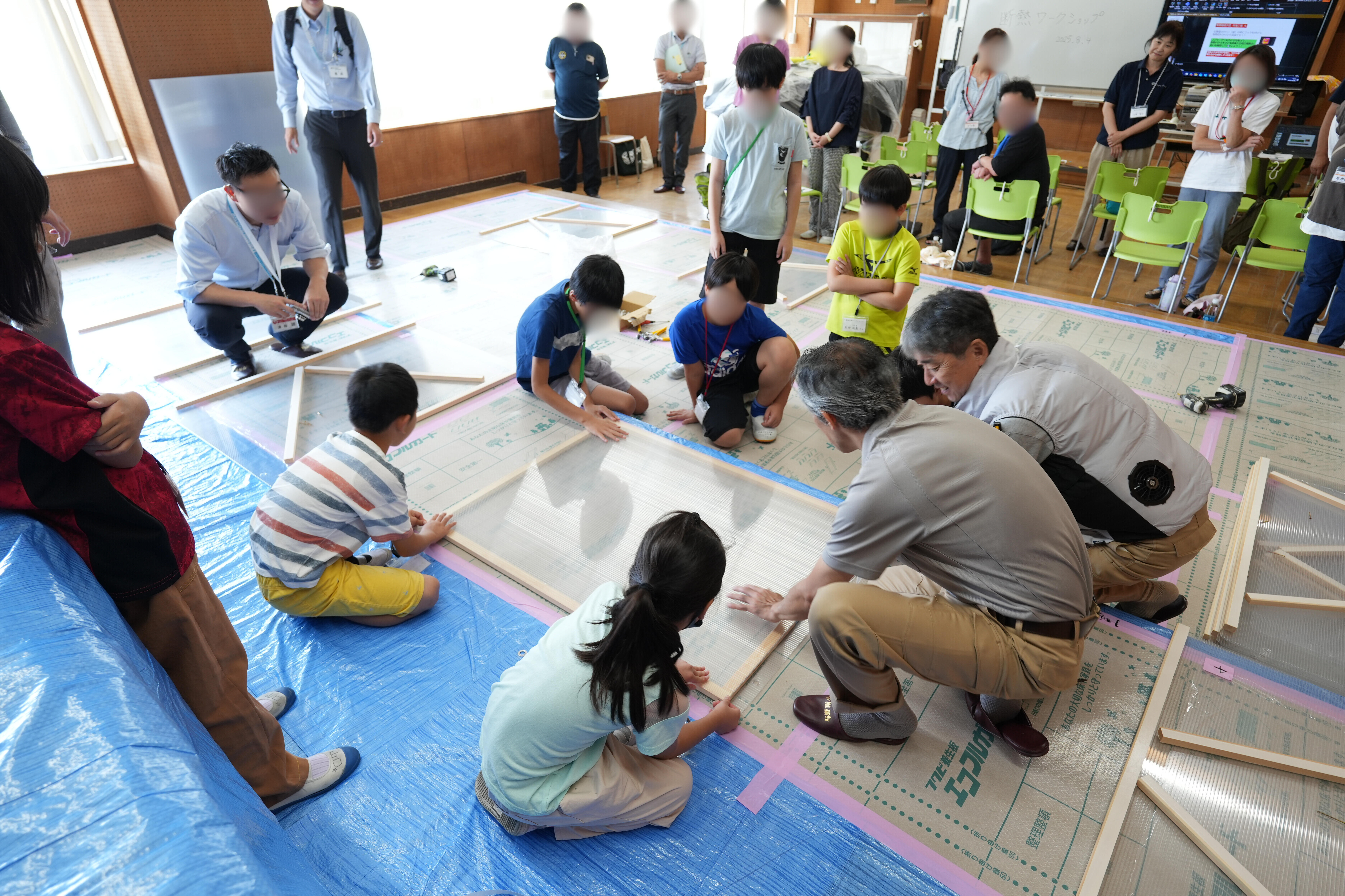 みんなで窓に設置する断熱パネルを作っていきます。