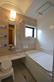 ご高齢のご両親のために寒いタイル貼りの浴室をユニットバスに改修しました。 浴室の工事に伴い洗面室も改修することになり、木のぬくもりが欲しいとのご要望で全面無垢板貼りにしました。 浴室も暖かく快適になり、洗面室の木の仕上がりも大変喜んで頂けました。