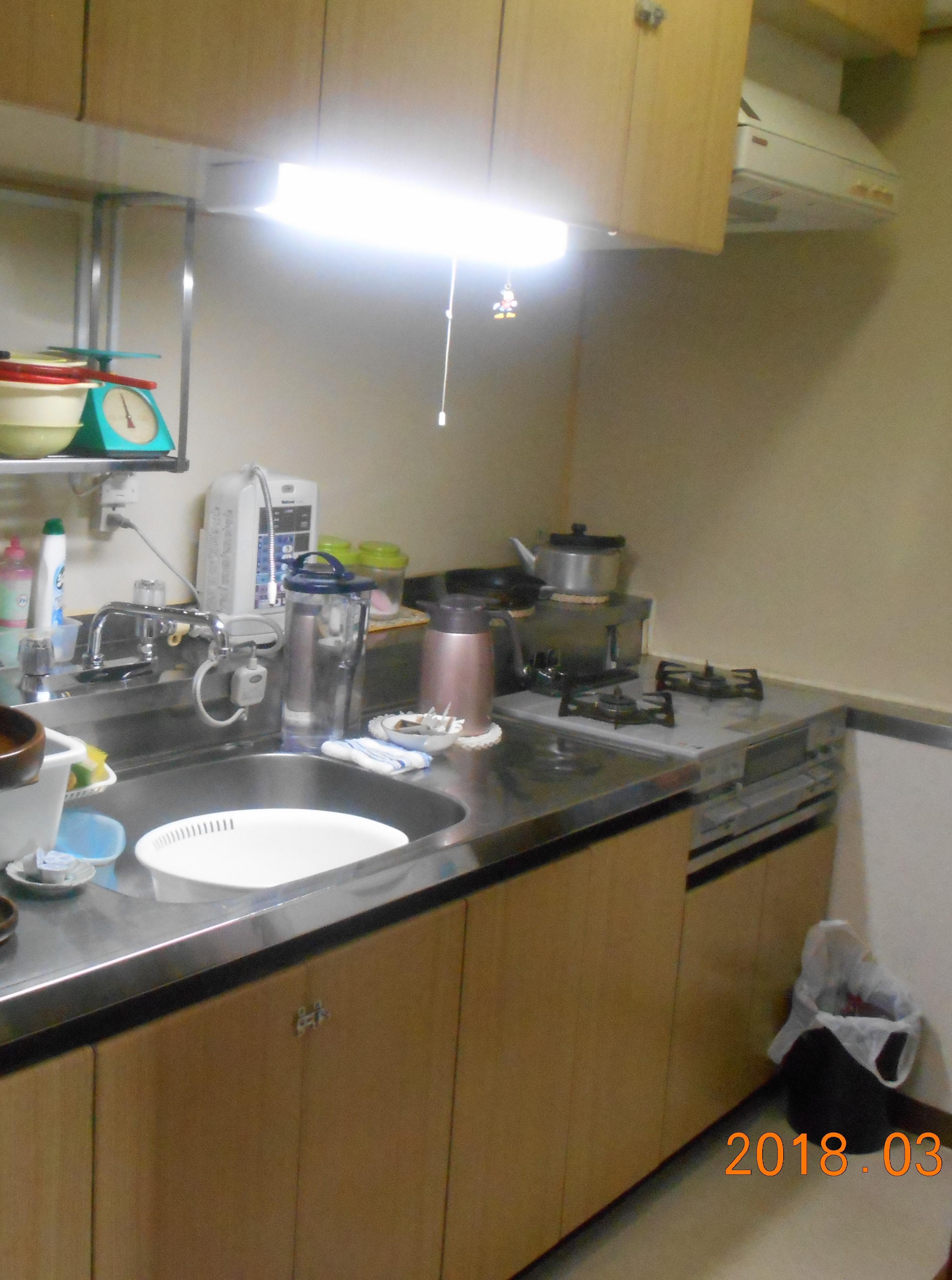 マンションのシステムキッチンをまるごと新しいものに取り換えました。 照明、まわりの壁パネル、天井クロス、床クッションフロアも貼替えています。収納扉やキッチンパネルはお手入れ収納扉は水だけでも汚れをふき取りやすい素材です!キッチンのカラーもお客様自身でお選びになっています。重厚感のある素敵なキッチンになりました。