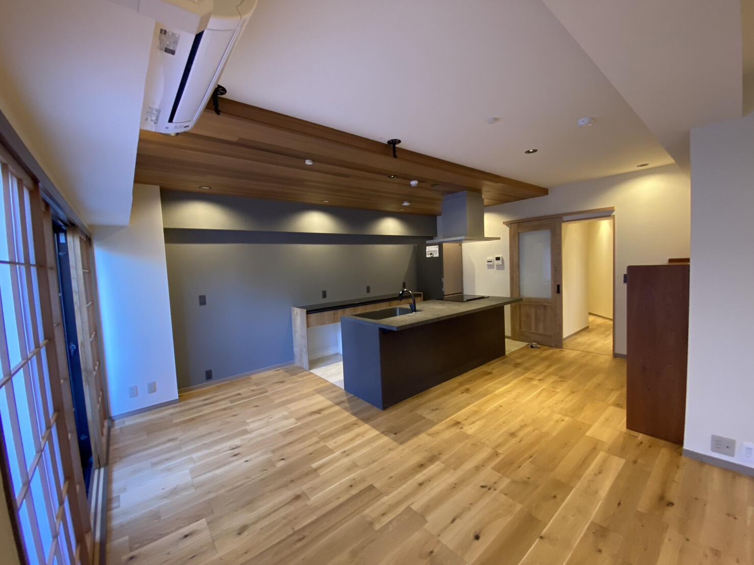 オーナー様のお母様がお住まいだったマンション一戸をリノベーション。 浴室やトイレの水廻り配置はそのままに、広々としたリビング・キッチンに。