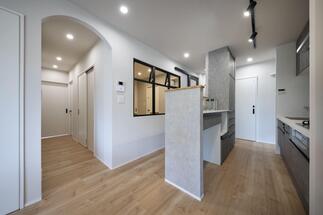 LDKから各居室に向かう部分はオーナー様こだわりのアーチ壁にし、空間の良いアクセントとなりました。