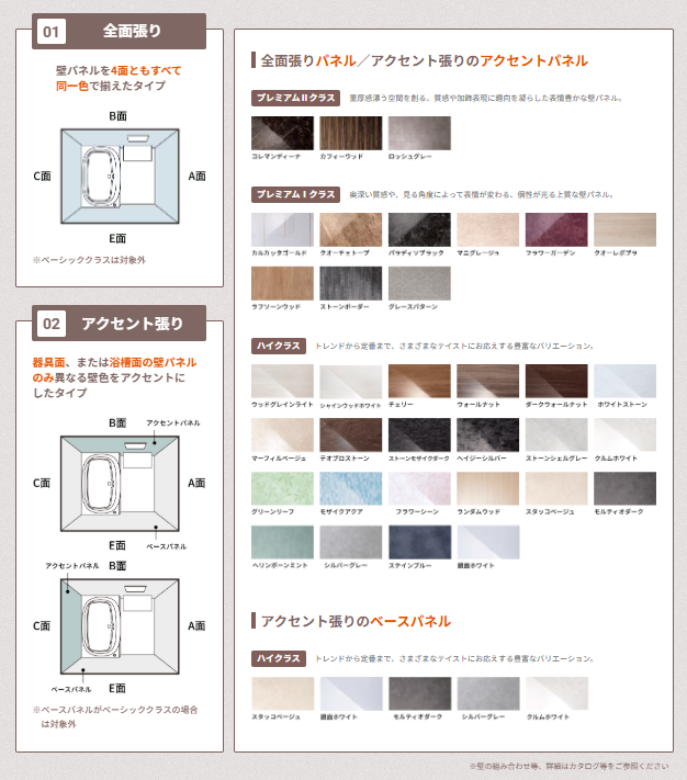 ※アクセント張り:ベースパネルがベーシッククラスの場合は対象外