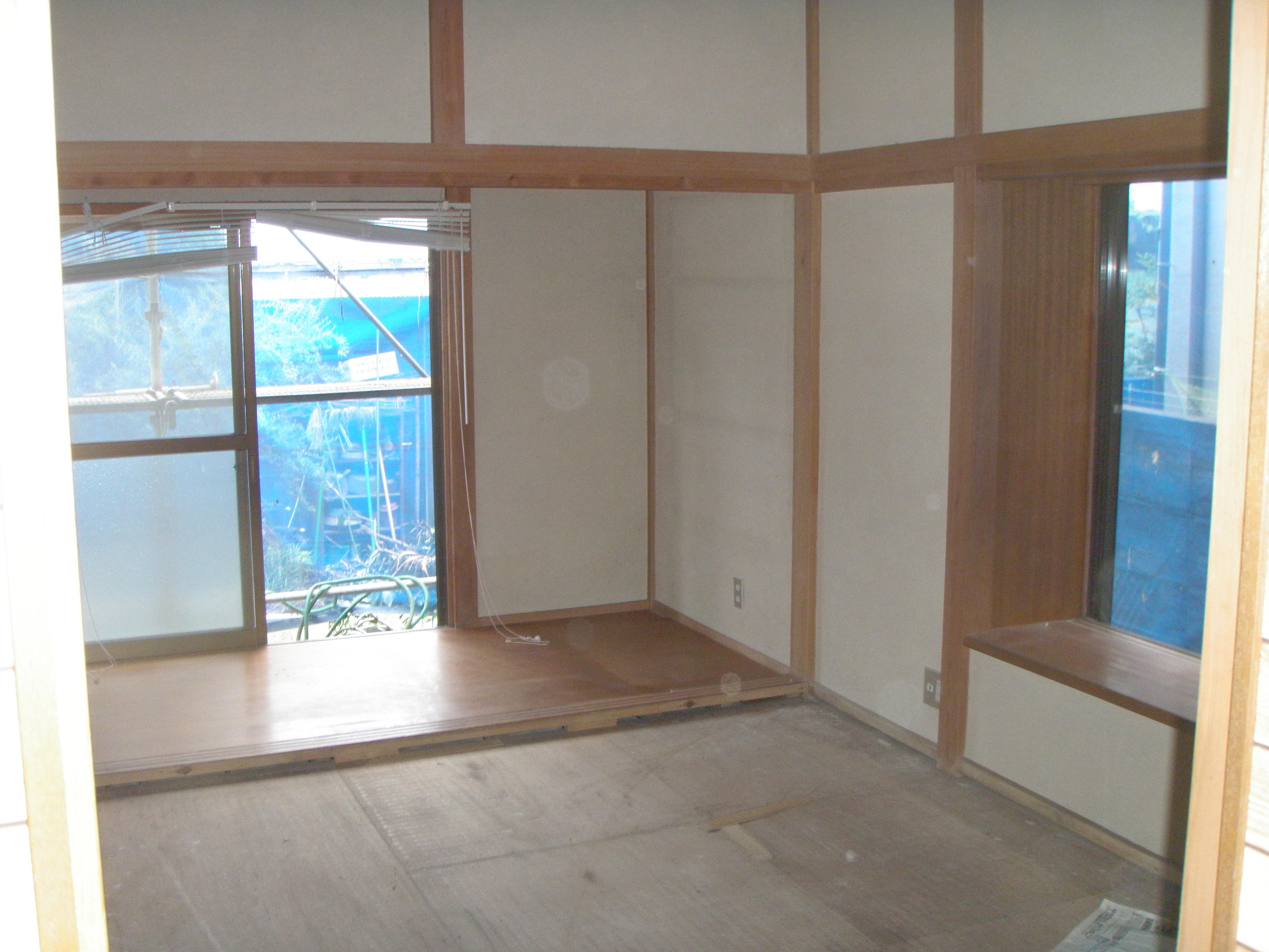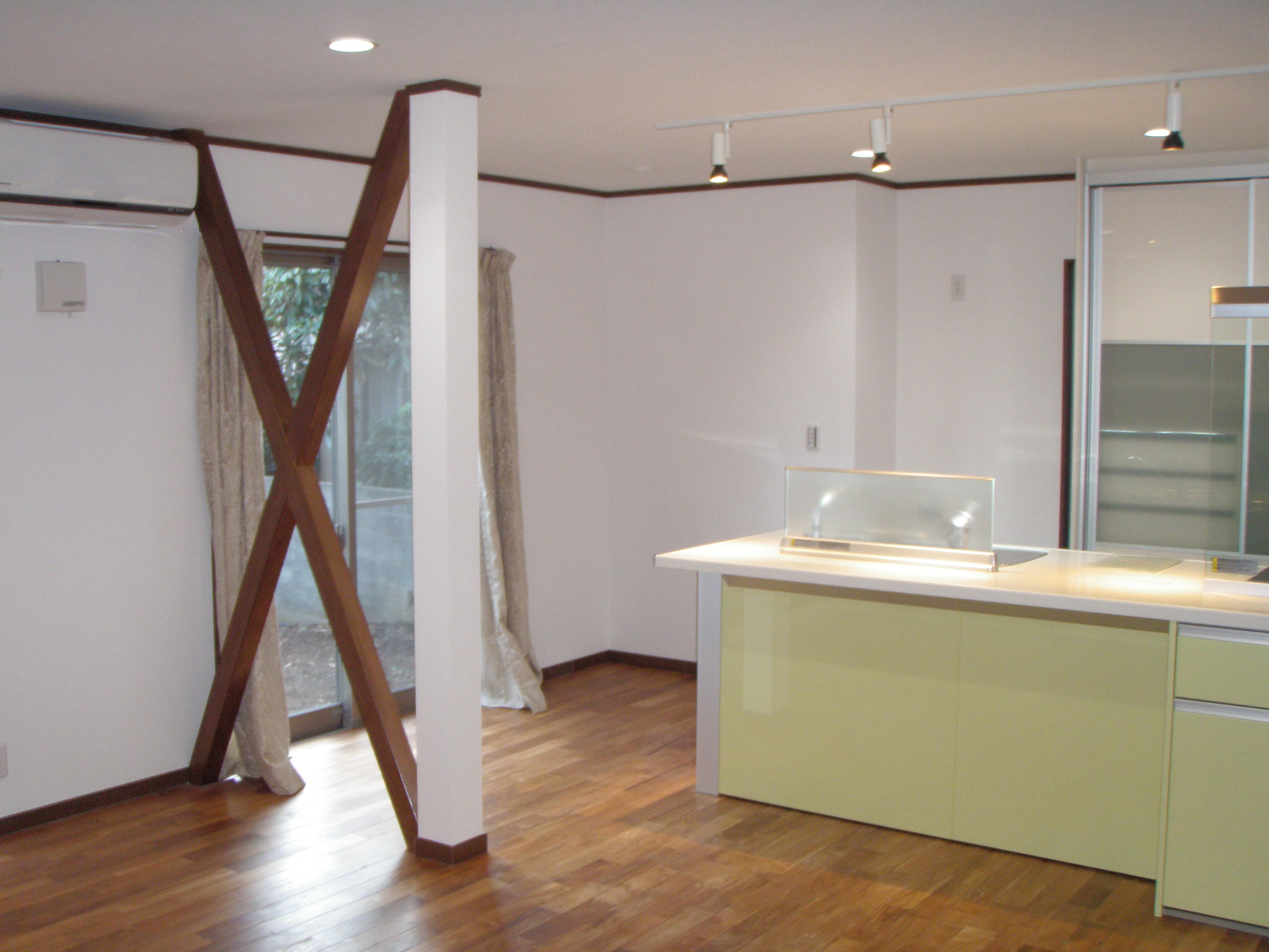 それなりの築年数を経た建物、思い切った間取りを変更させていただきました。和室だったお部屋をキッチンに変更し、サッシも交換。無垢床にホタテ漆喰壁で、明るさと温かみを備えた快適なダイニングキッチンになりました。